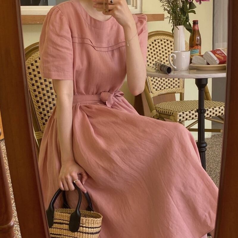 ドレス サマーラウンドネックウェストベルト ルーズロングスカート 夏物 ハーネス Oネック 韓国婦人49057826334
