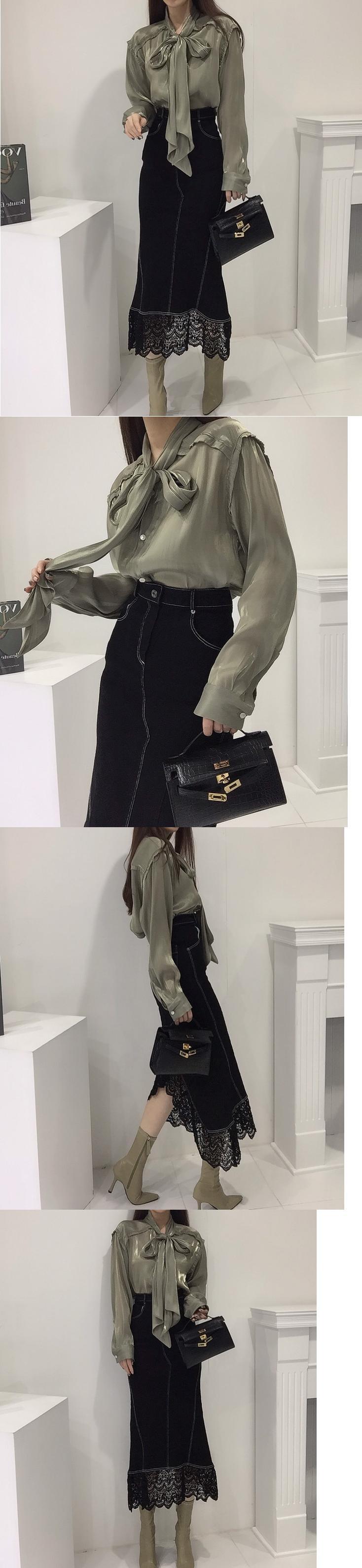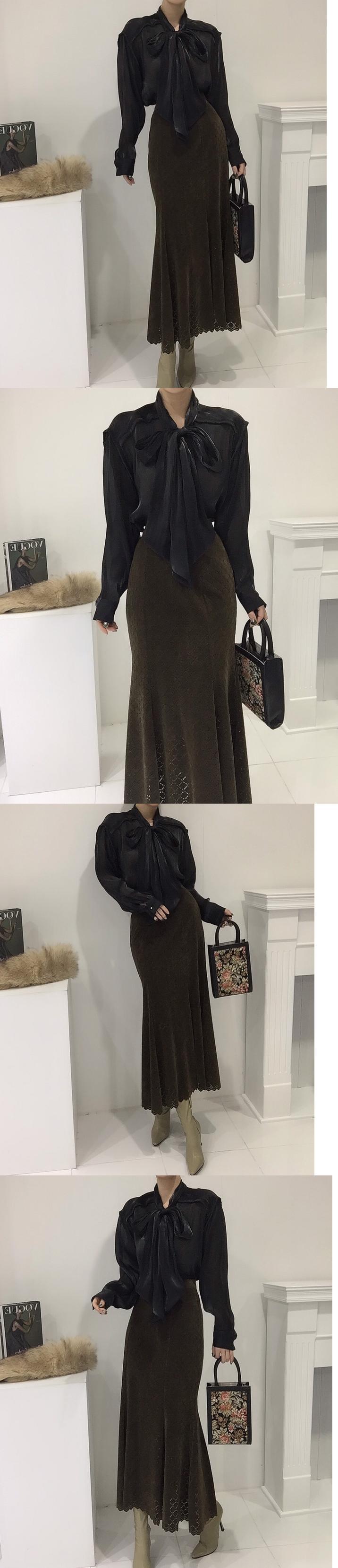 オータムリボンルーズシフォンシャツ レディース ロング 秋物 韓国婦人12450118876