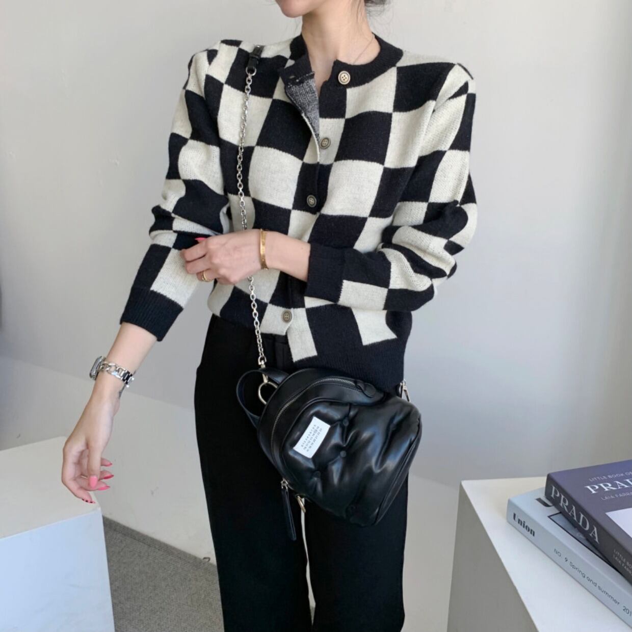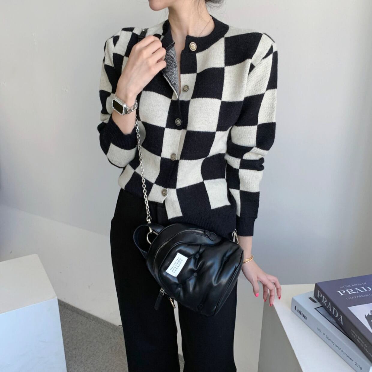 オータムスタンダードラウンドネックカラールーズニットカーディガンジャケット ロング レトロ 秋物 Oネック 韓国婦人8796242927
