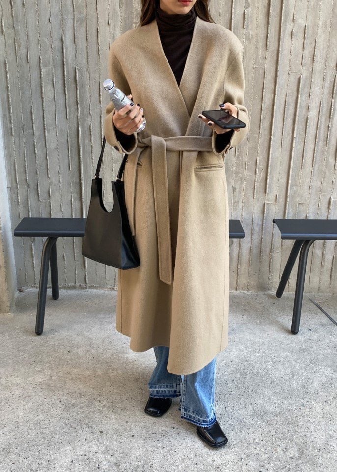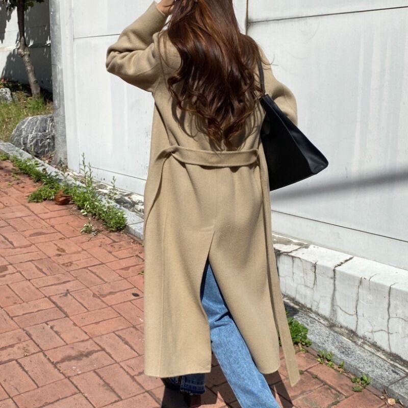 オータムウィンタースタイルVネックベルト ロングコート 秋物 冬物 ハーネス 韓国婦人55946548570