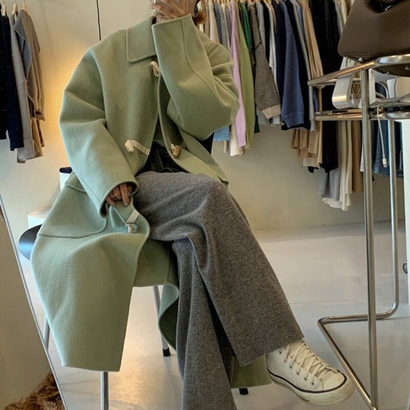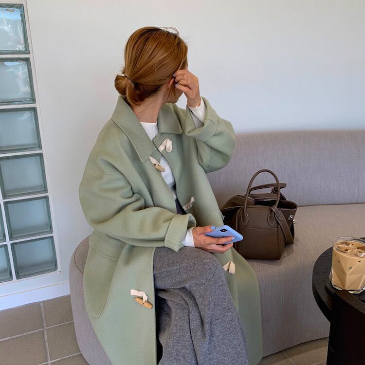 オータムウィンタースタンダードカジュアルボタンコート ロングレディース レトロ 秋物 冬物 韓国婦人75313626321