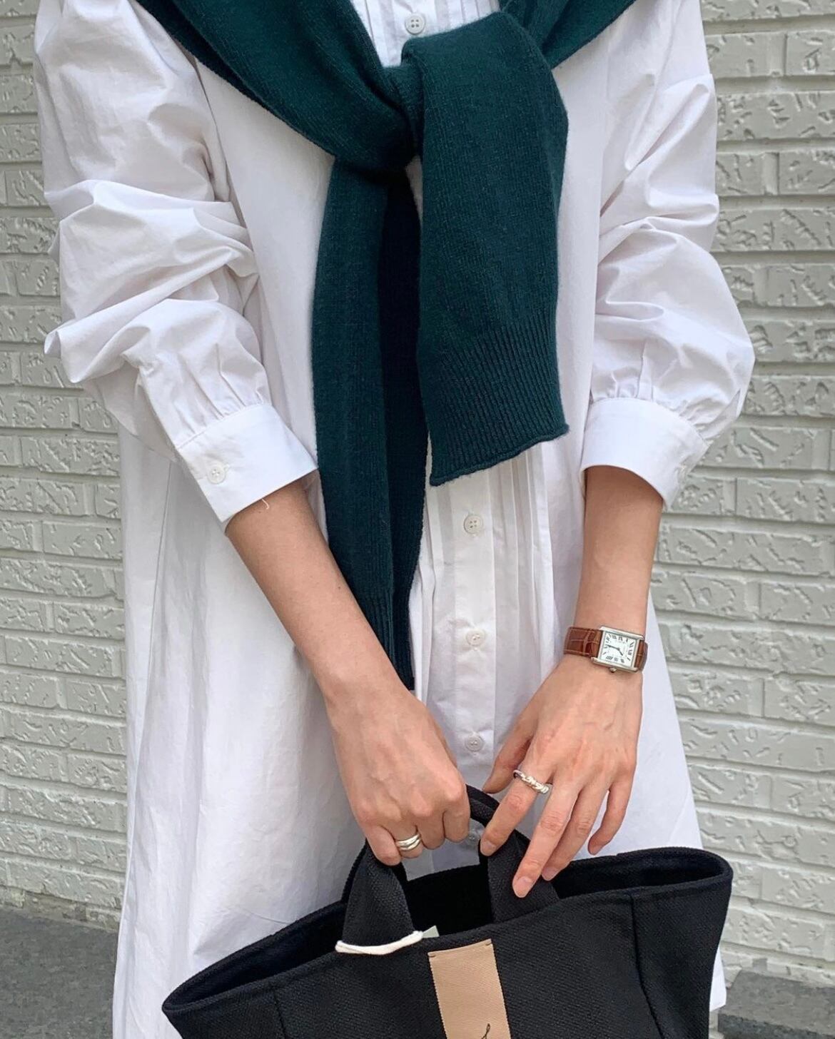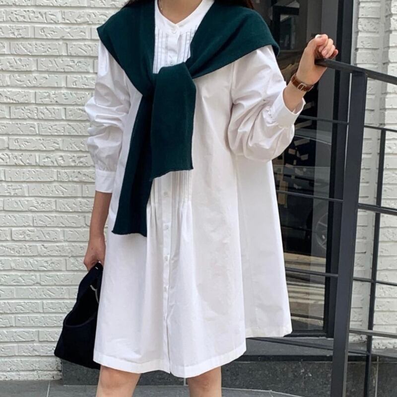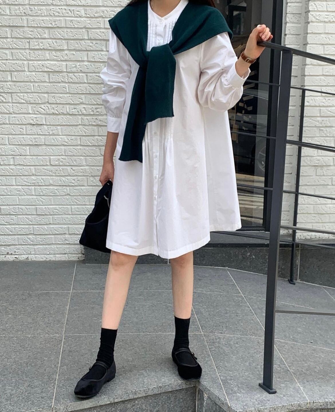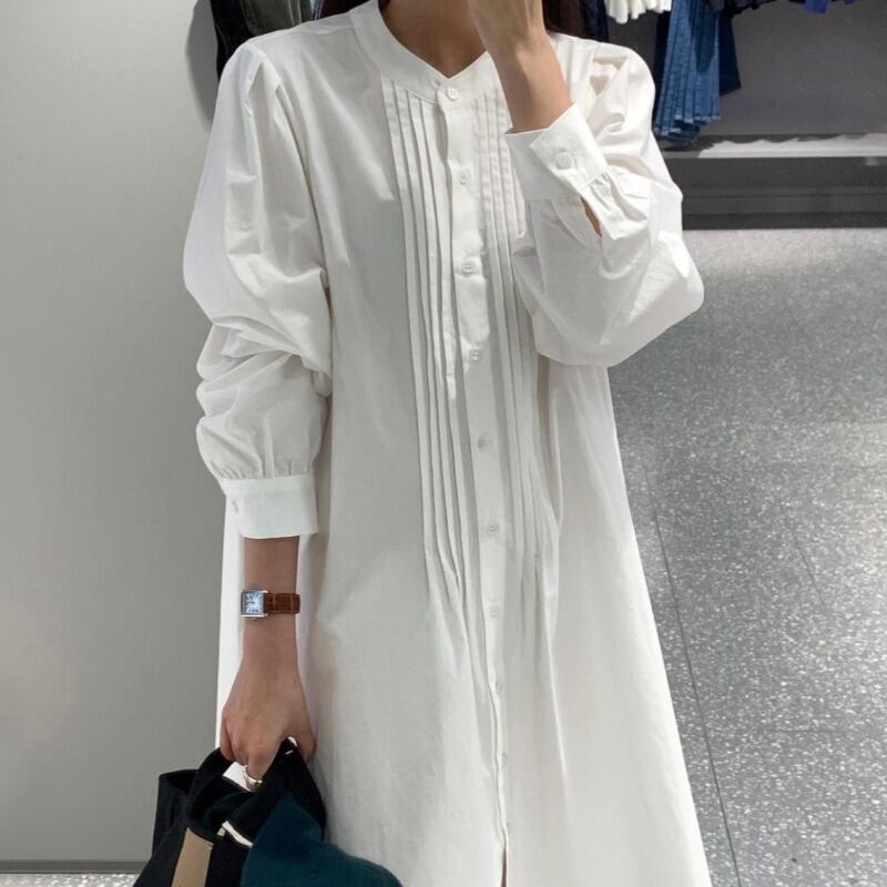 オータムウィンターミニマリストプリーツシャツ ドレス スタイル 秋物 冬物 韓国婦人25173526394