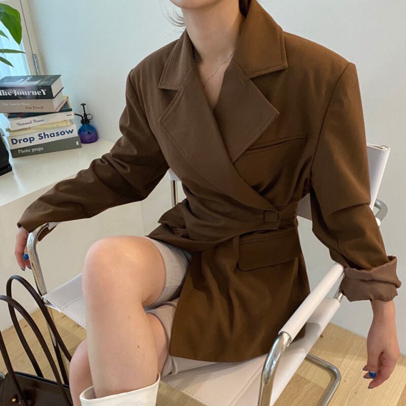 オータムウィンタースタンダードボタンカジュアルジャケット レディース レトロ 秋物 冬物 韓国婦人8305600926