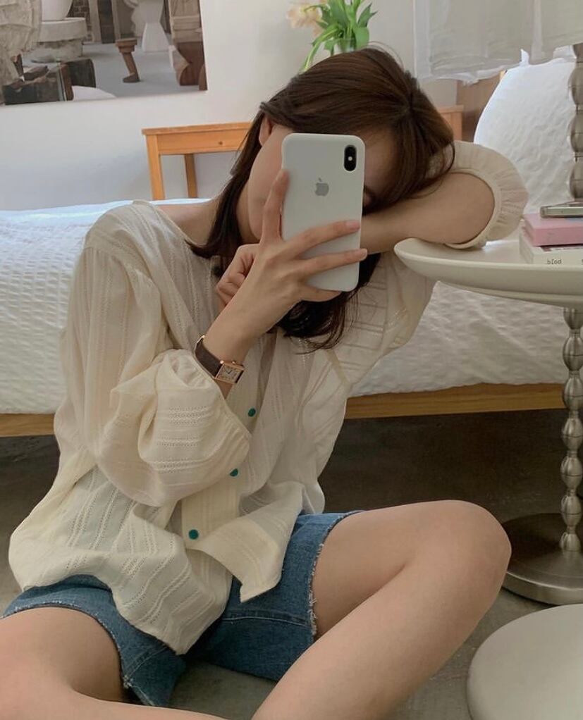 スタンダードスタイルカラーダブルブレストラウンドネックジャカードシャツ ブラウス レディース レトロ Oネック 韓国婦人89043855974