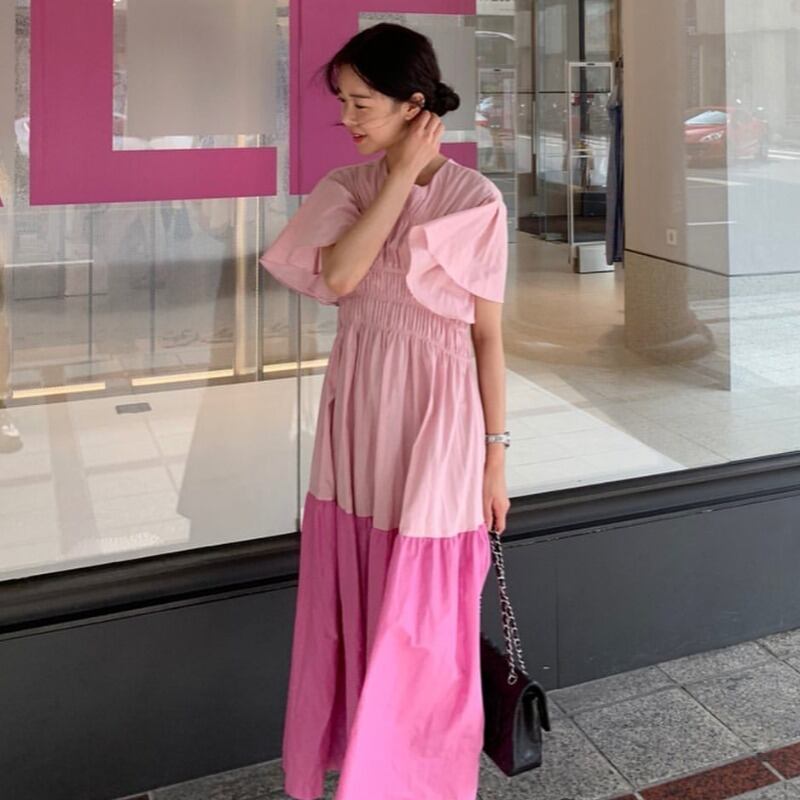 サマーラウンドネックスリーブドレス ロング 大人ガーリー スウィート キュート カジュアル 夏物 Oネック 韓国婦人83832297252