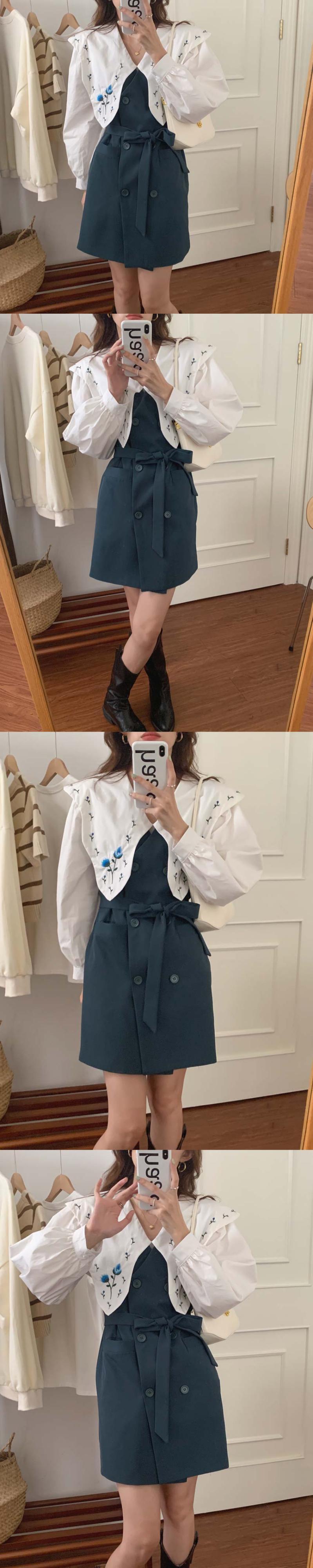 色:白黄色のシャツ,黒いシャツ,白と青の花柄のシャツ,白いベストスカート,ブルーベストスカート,コーヒーカラーのベストスカート