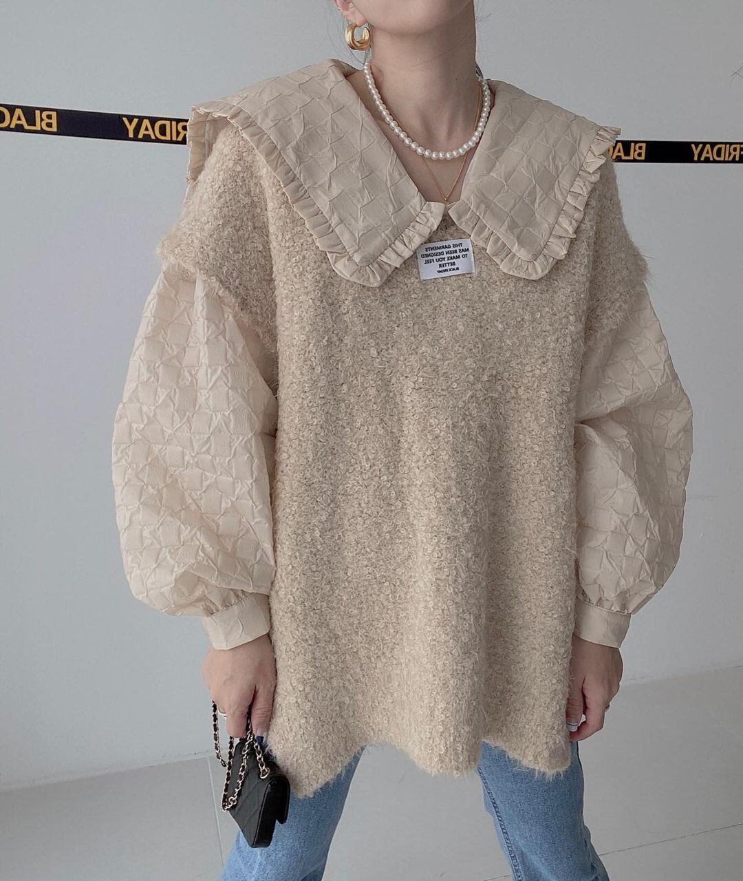 オータムウィンターVネックカジュアルルーズセーター レディース 秋物 冬物 韓国婦人37410411517