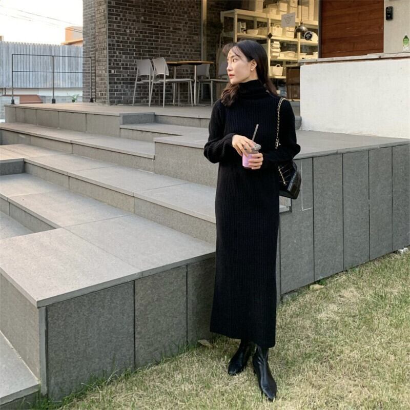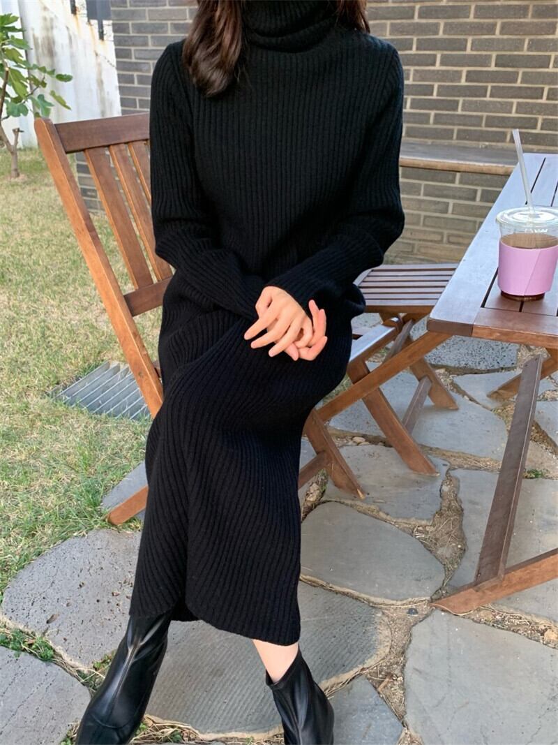 オータムウィンターソリッド カラーロングニットドレス セーター スカート レディース 秋物 冬物 ソリッドカラー 韓国婦人59758539038
