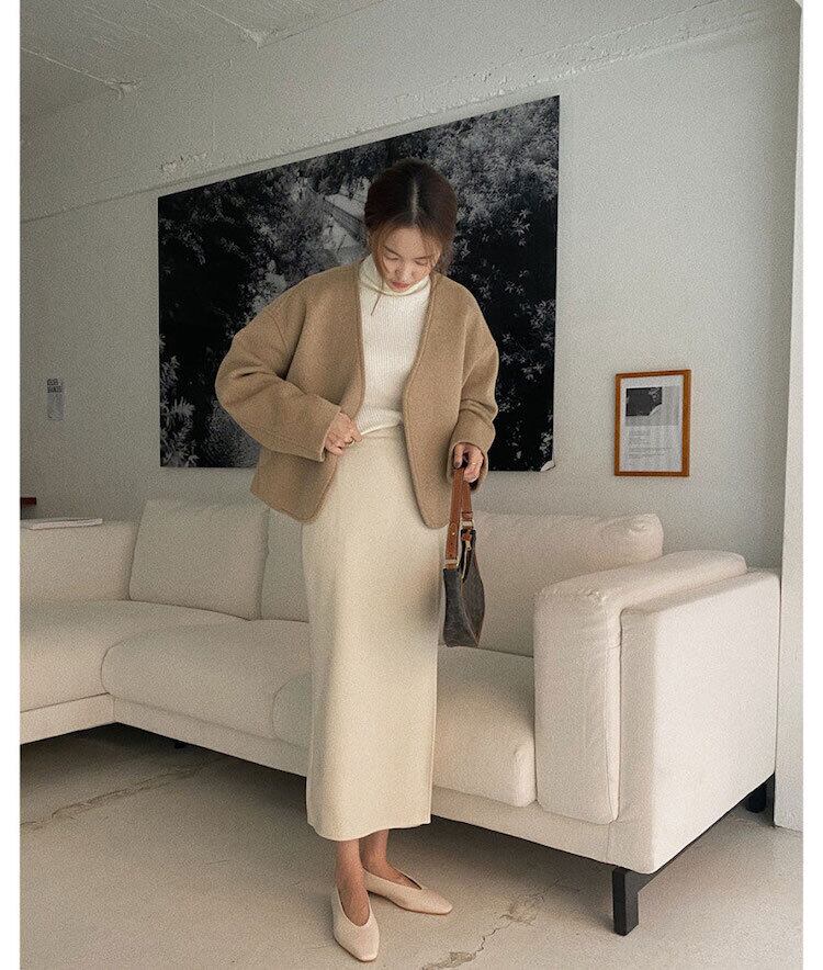 オータムウィンターVネックカジュアルルーズカーキコート ショート 秋物 冬物 韓国婦人81555051257