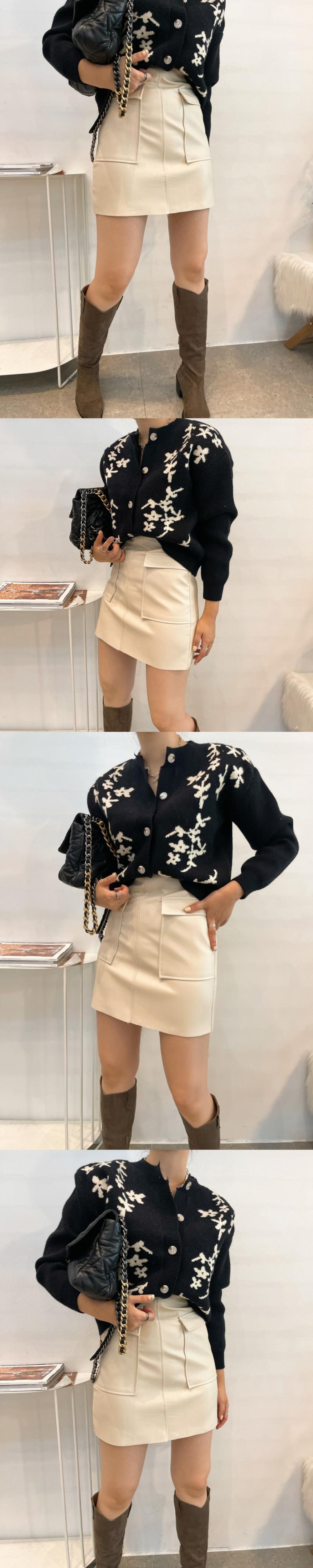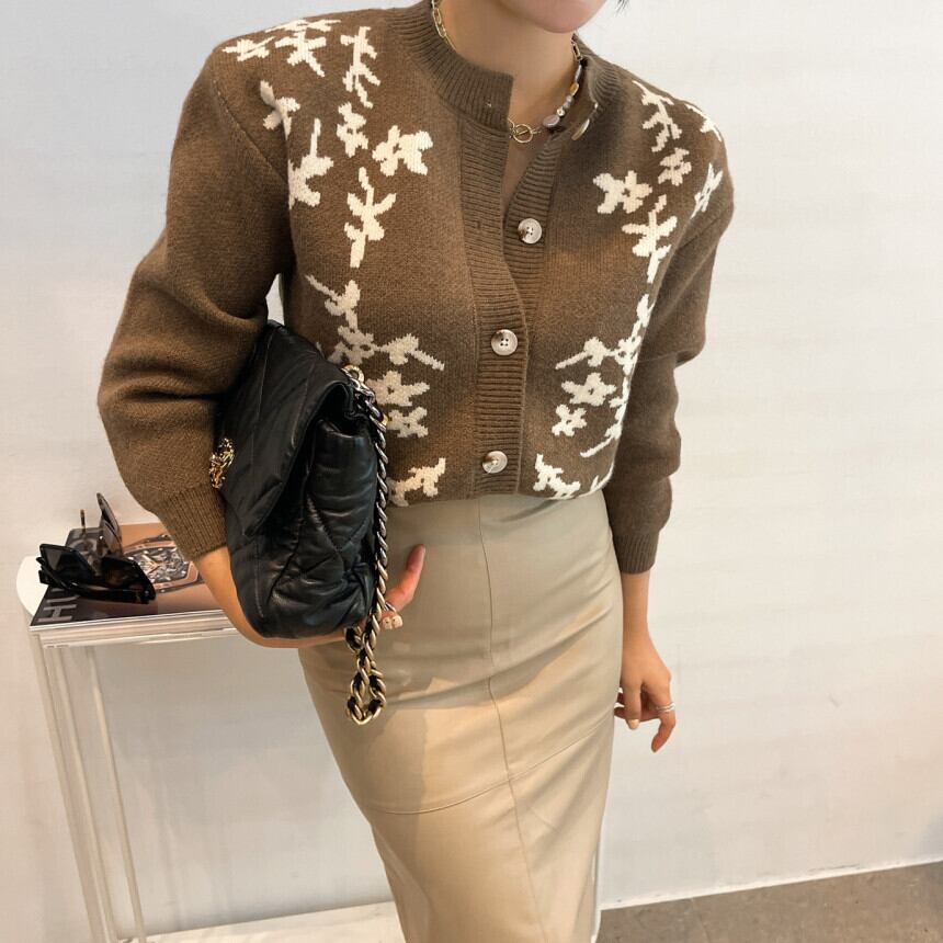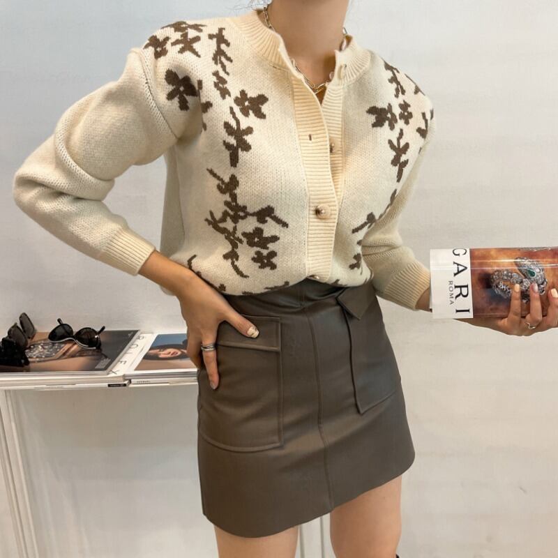 オータムウィンタースタンダードプリントカーディガンセーター ジャケット レザーAラインスカート レディース レトロ 秋物 冬物 韓国婦人50684378832
