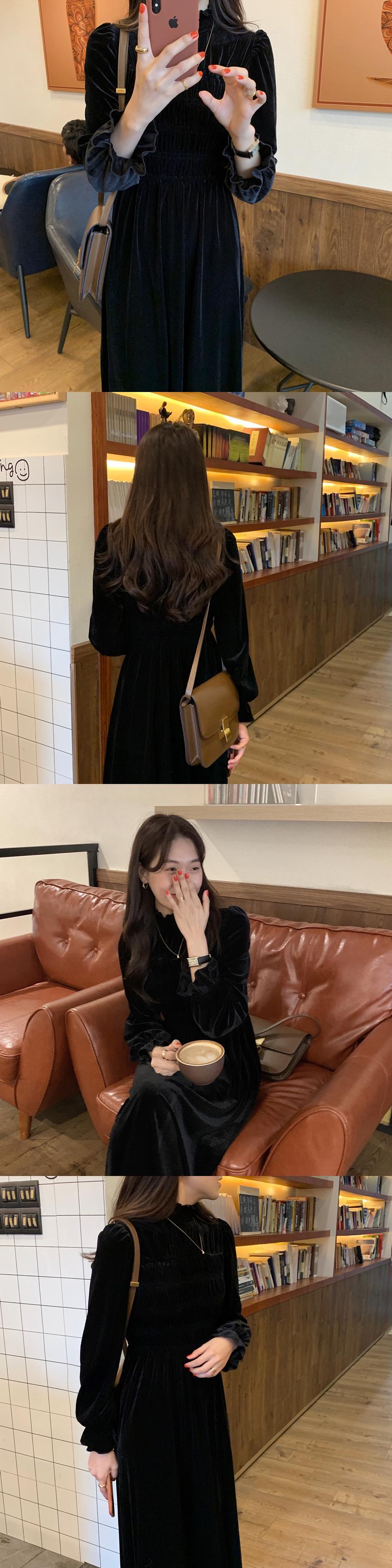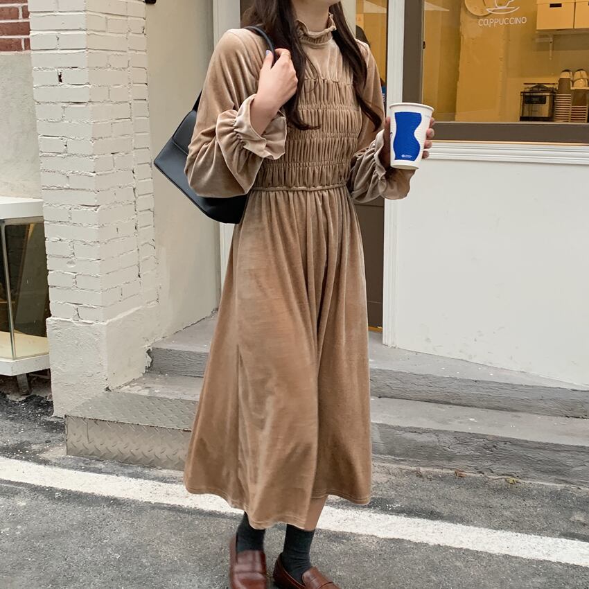 オータムウィンタースタンダードウェストロングベルベットドレス レディース レトロ 秋物 冬物 韓国婦人51362007202