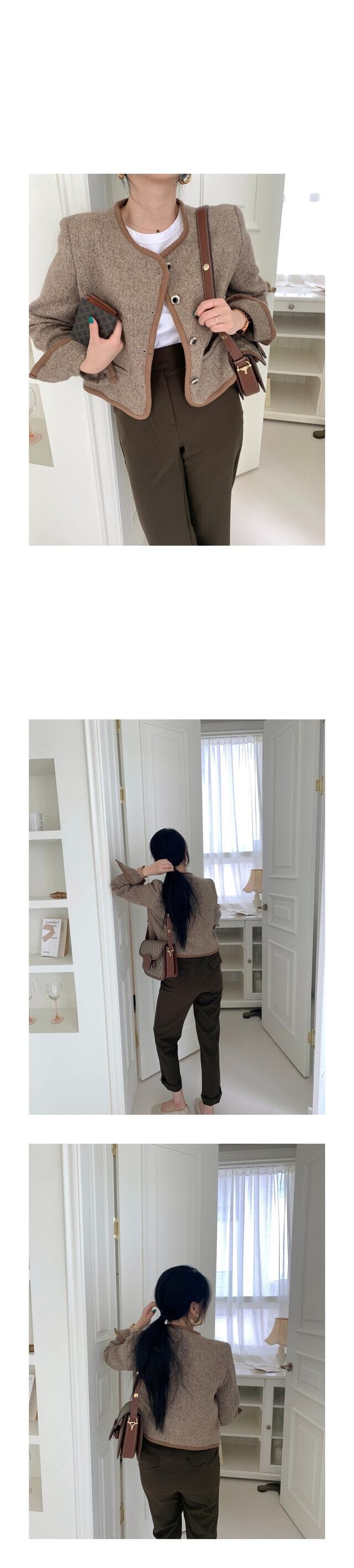 オータムスタンダードルーズラウンドネックカラーツィードジャケット ショートレディース レッド レトロ 秋物 Oネック 韓国婦人51434470589