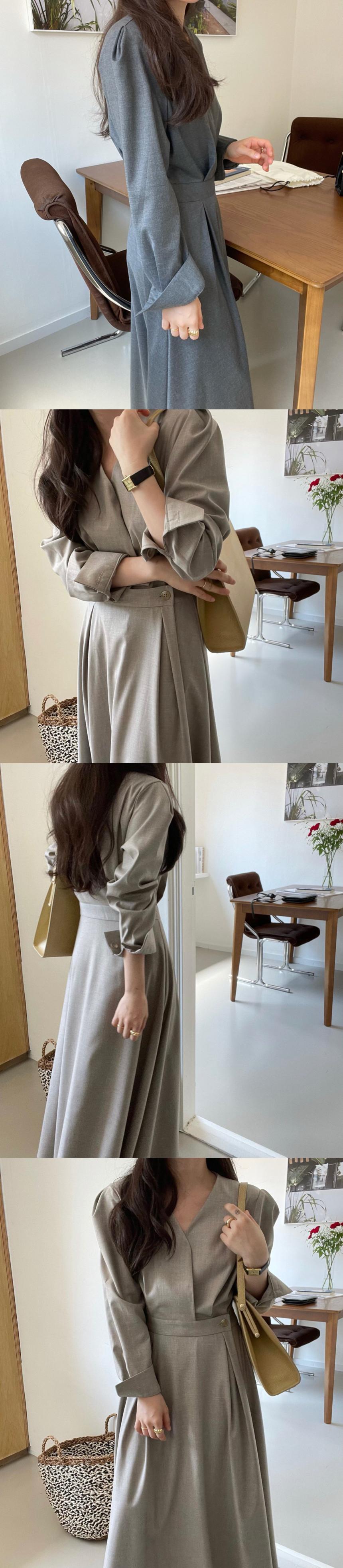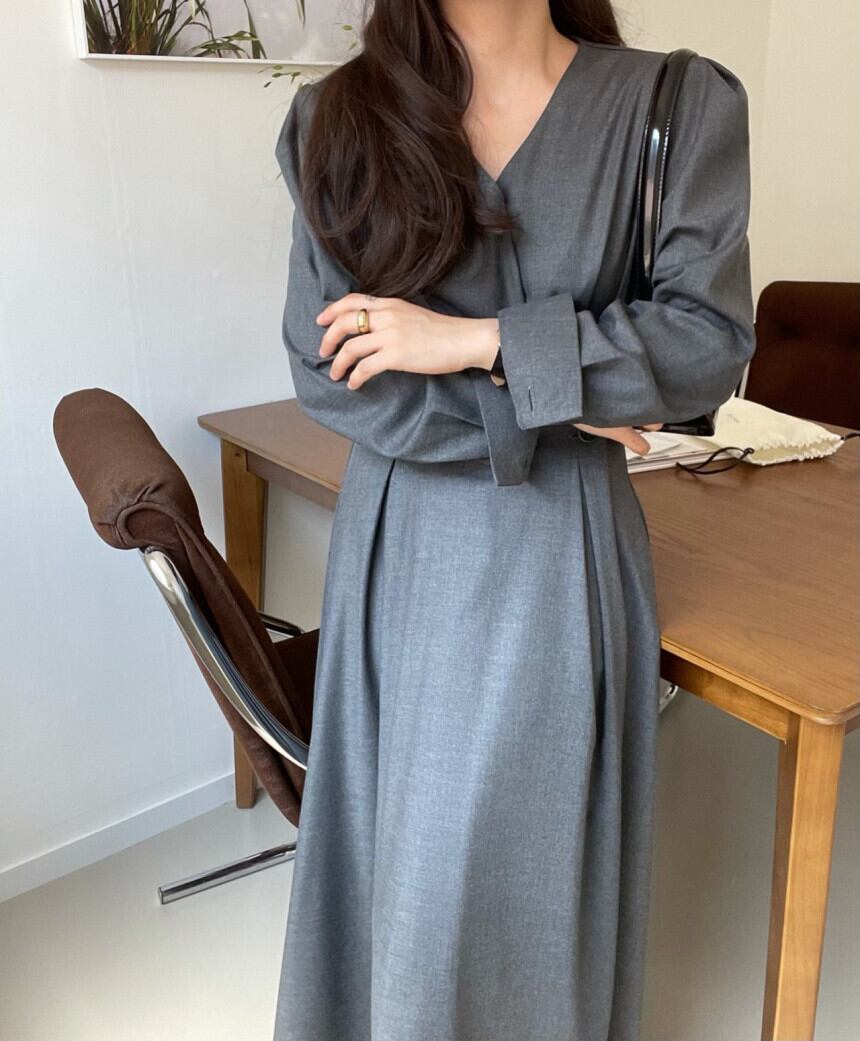 オータムクロスVネックボタンスリーブドレス レディース 秋物 韓国婦人45888169934