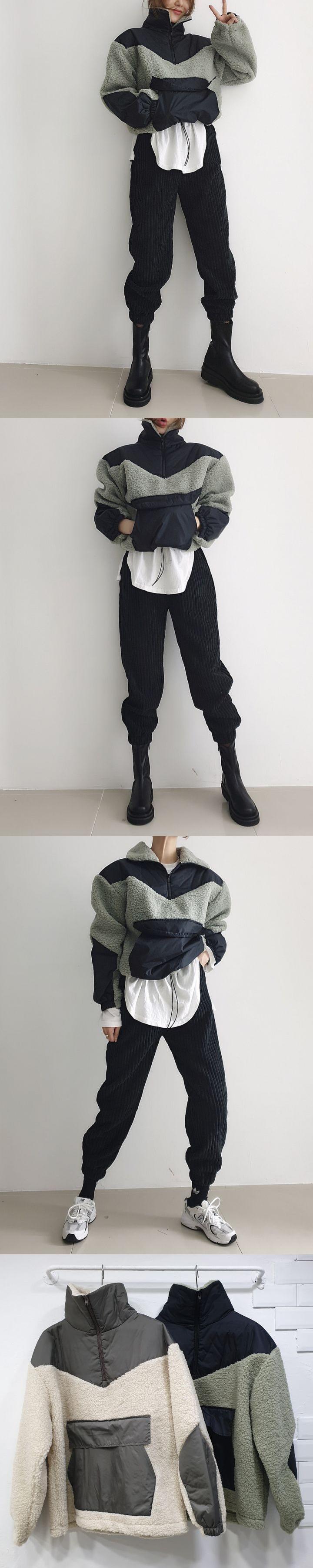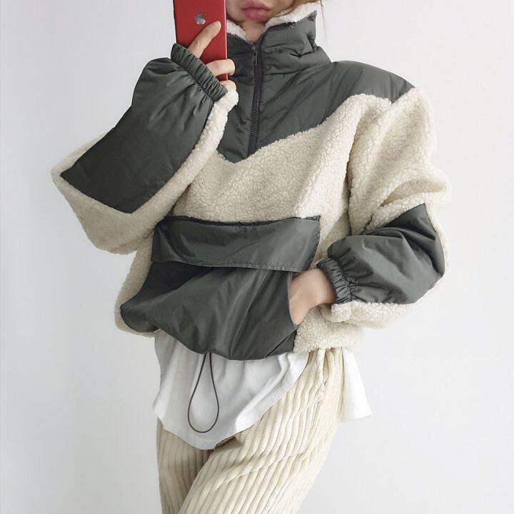 ウィンターカジュアルウールカラールーズベルベットプルオーバー ジャケット 冬物 ステッチ 韓国婦人83213337515