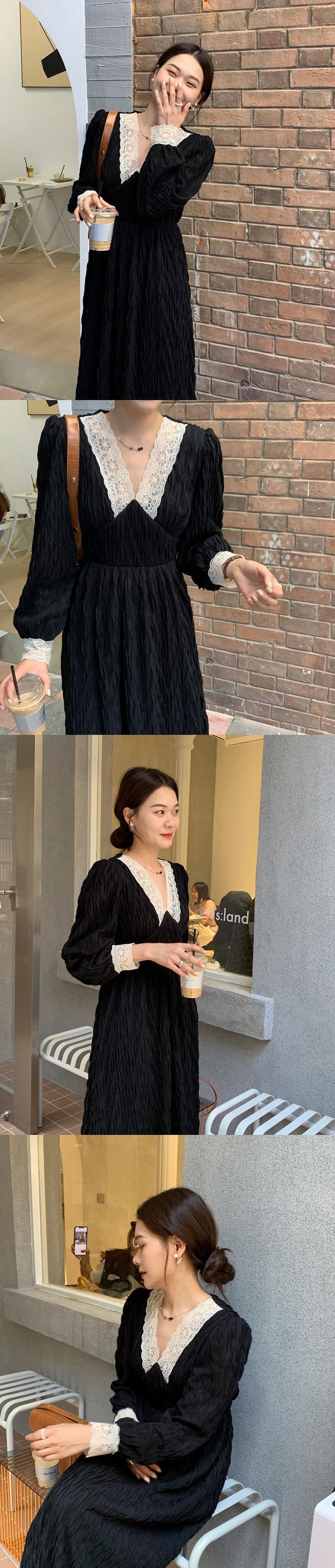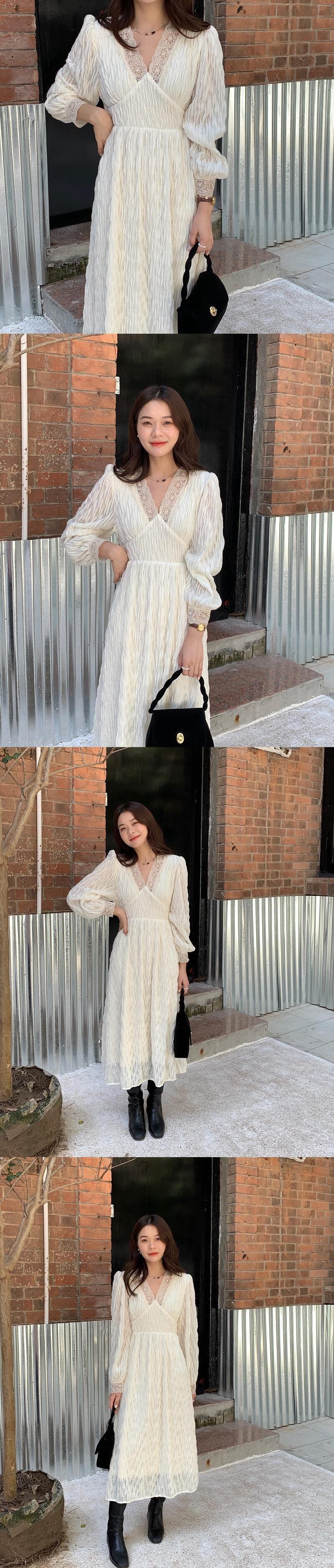 オータムドレス レースVネックウェスト 秋物 韓国婦人30551886768