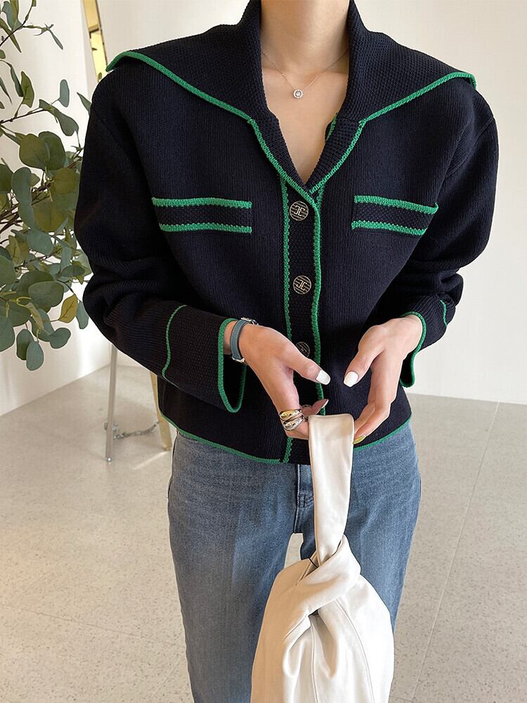 オータムスタンダードネイビーカラーニットセーター カーディガンジャケット レディース レトロ 秋物 韓国婦人37440788688