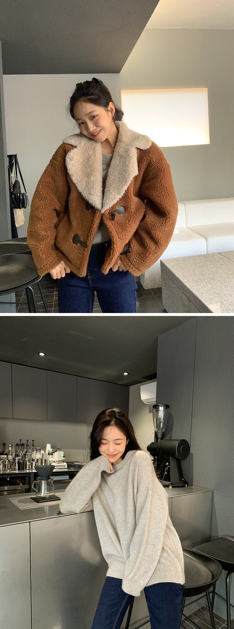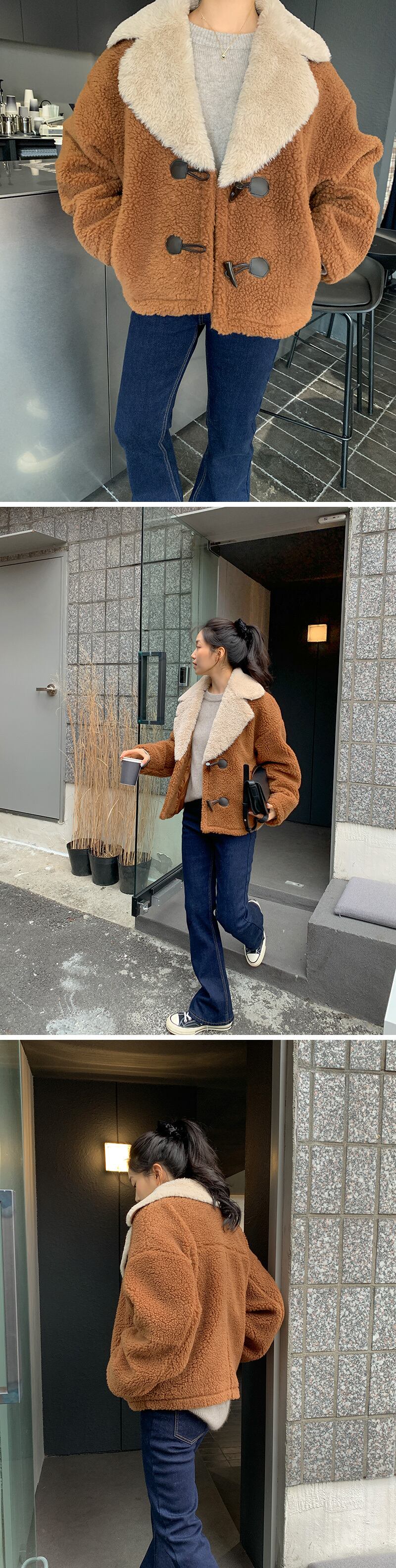 ウィンタースタンダードカラーバックルウールショートコート レトロ 冬物 ステッチ 韓国婦人23755585760