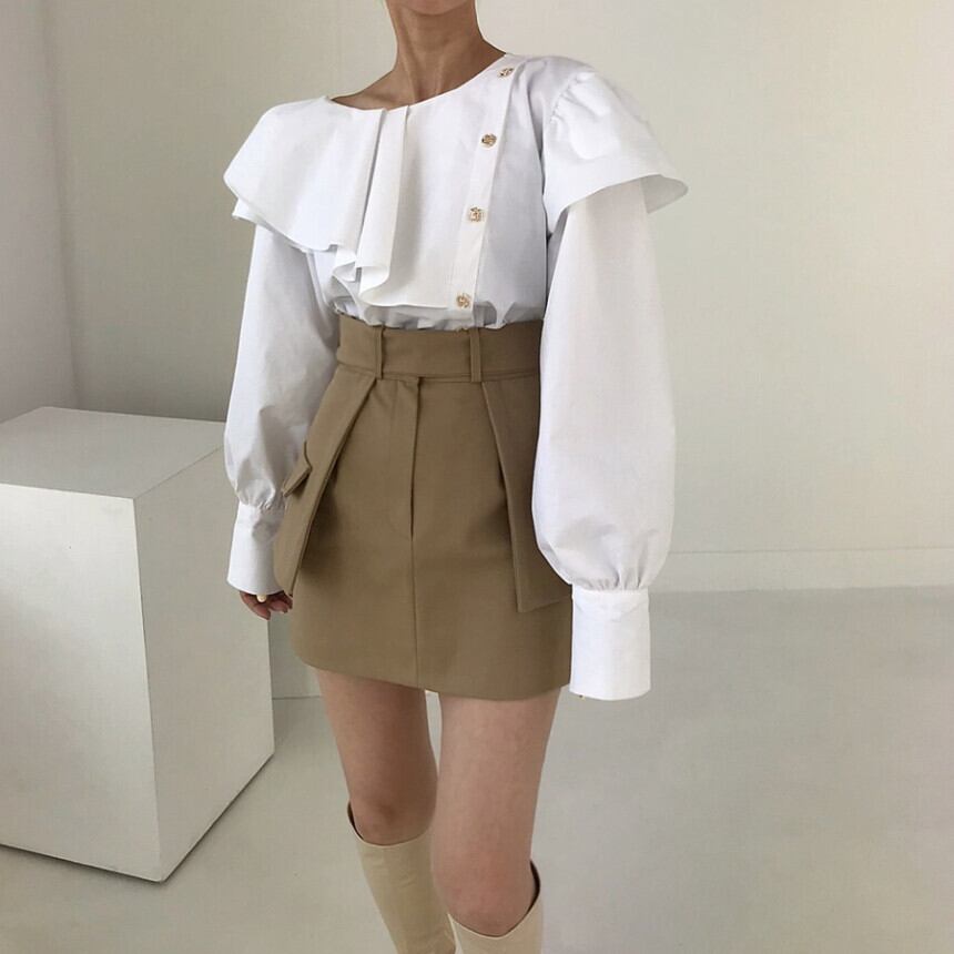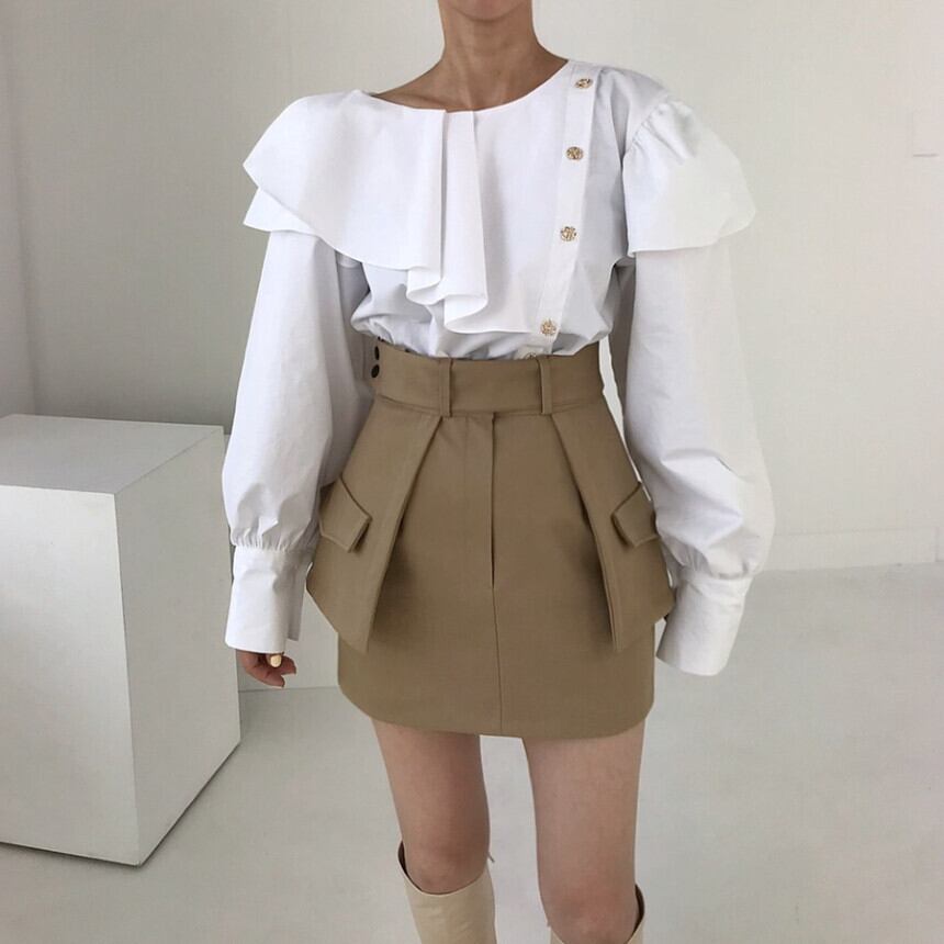 オータムシャツ ハイウェストウェストカーキスカート 秋物 韓国婦人16419029917