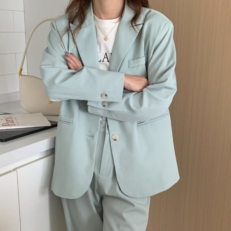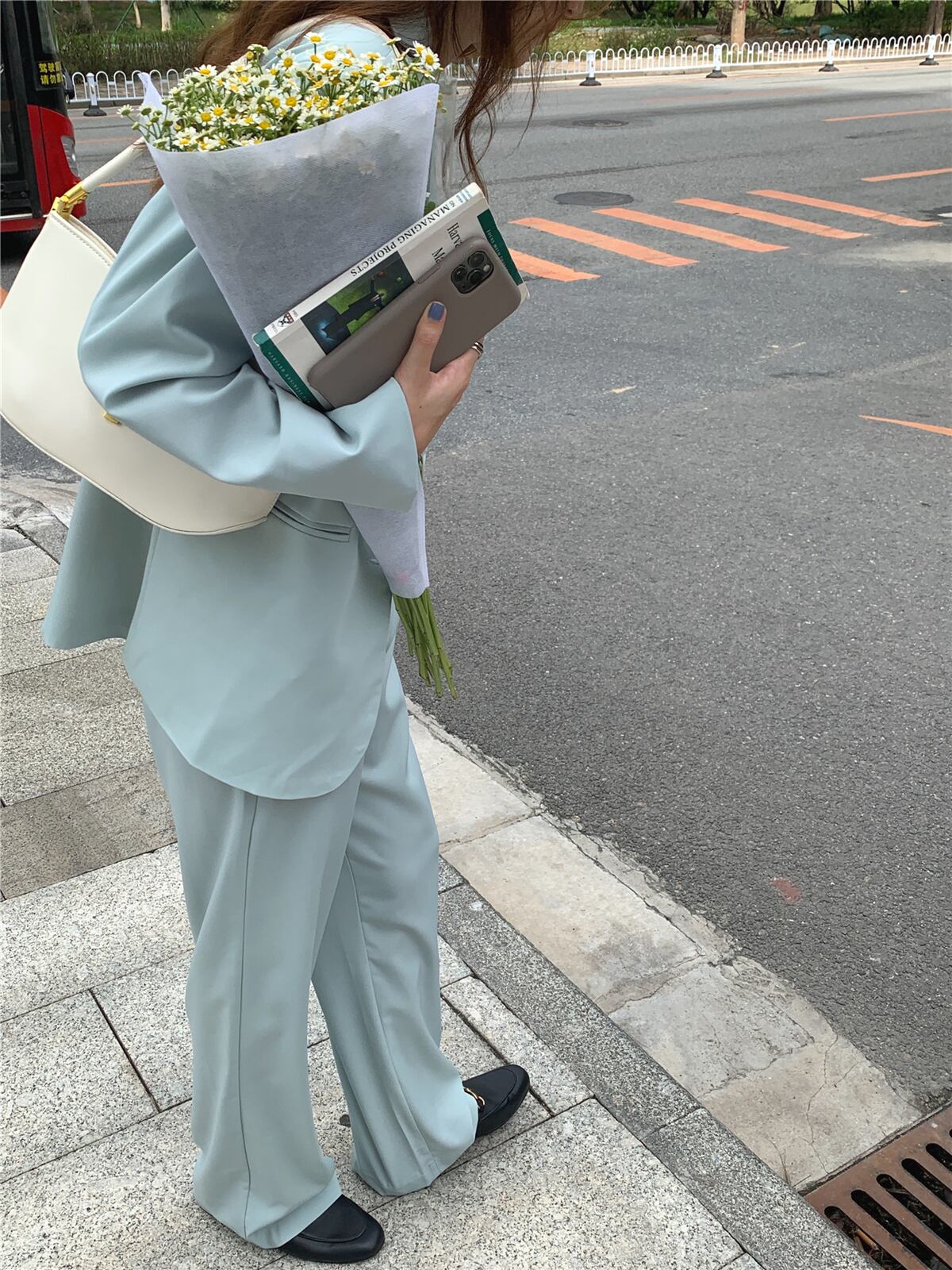 スタンダードスタイルルーズジャケット ハイウェストウェスト薄手ワイドレッグパンツ レディース レトロ ワイドパンツ 韓国婦人24192995234