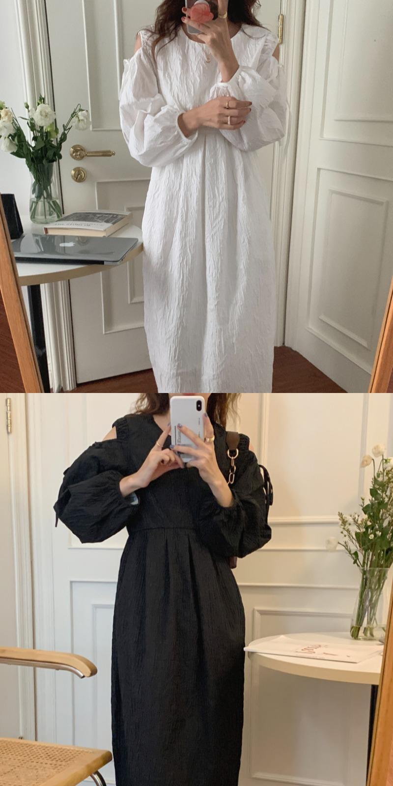 オータムスタンダードスタイルラウンドネックストラップレスハイウェストウェストルーズスリーブロングドレス レディース レトロ 秋物 Oネック 韓国婦人54877431431