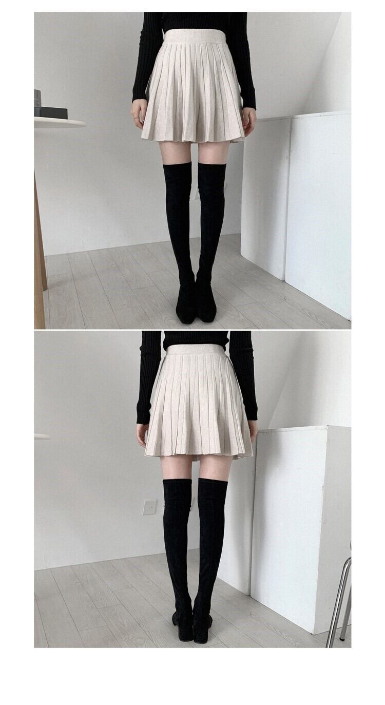 オータムウィンタースタンダードハイウェストウェストプリーツニットAラインスカート レトロ 秋物 冬物 韓国婦人26831166343