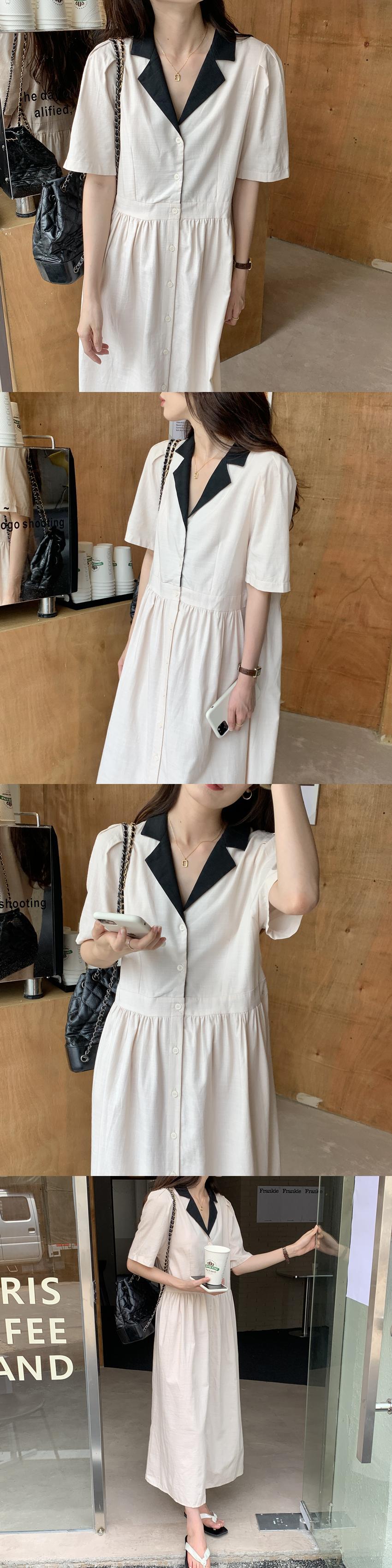 サマースタイルカラーシングルブレストハイウェストウェストロングドレス レディース 夏物 韓国婦人39261881614