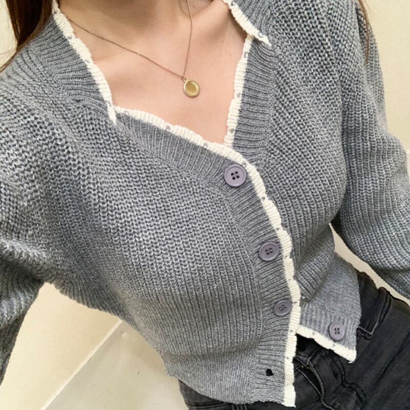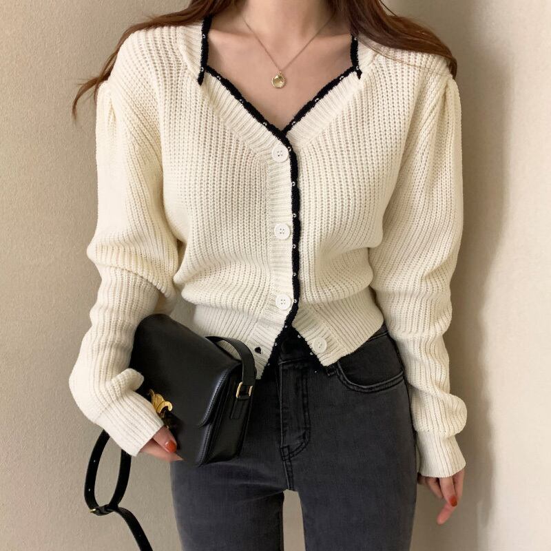 オータムウィンタースタンダードカラールーズショートニットカーディガンセーター レディース ロング レトロ 秋物 冬物 スクウェア 韓国婦人99507032834