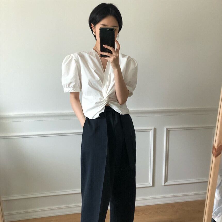トップス サマークロススタイルルーズスリーブVネックシャツ 夏物 韓国婦人11479724808
