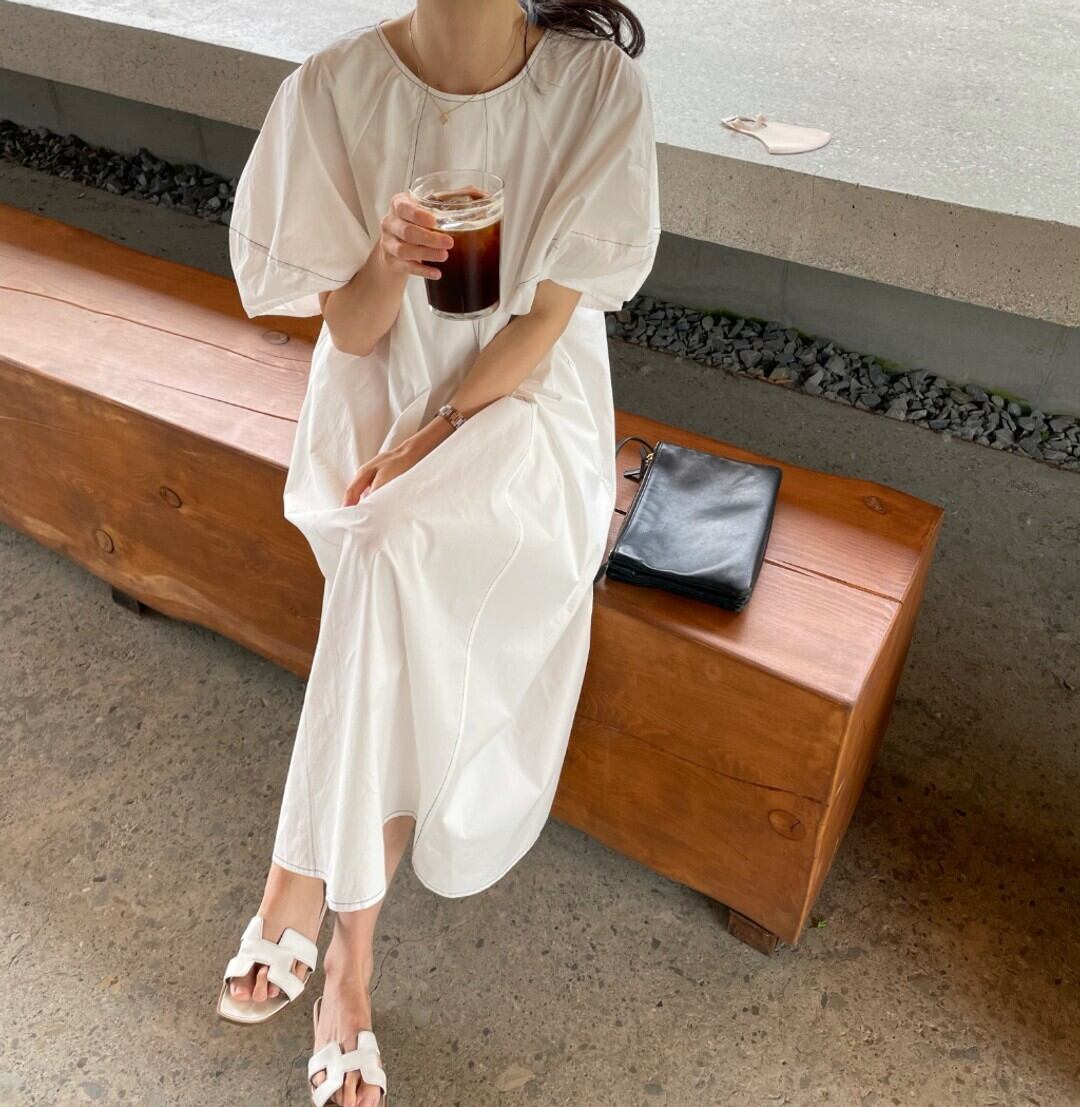 スタンダードルーズ薄手カジュアルロングサマー レトロ 夏物 スカート Oネック 韓国婦人70418435292