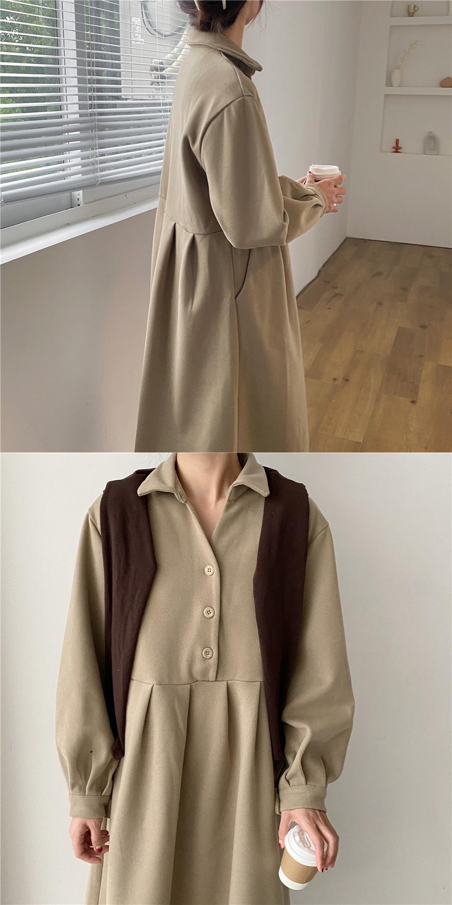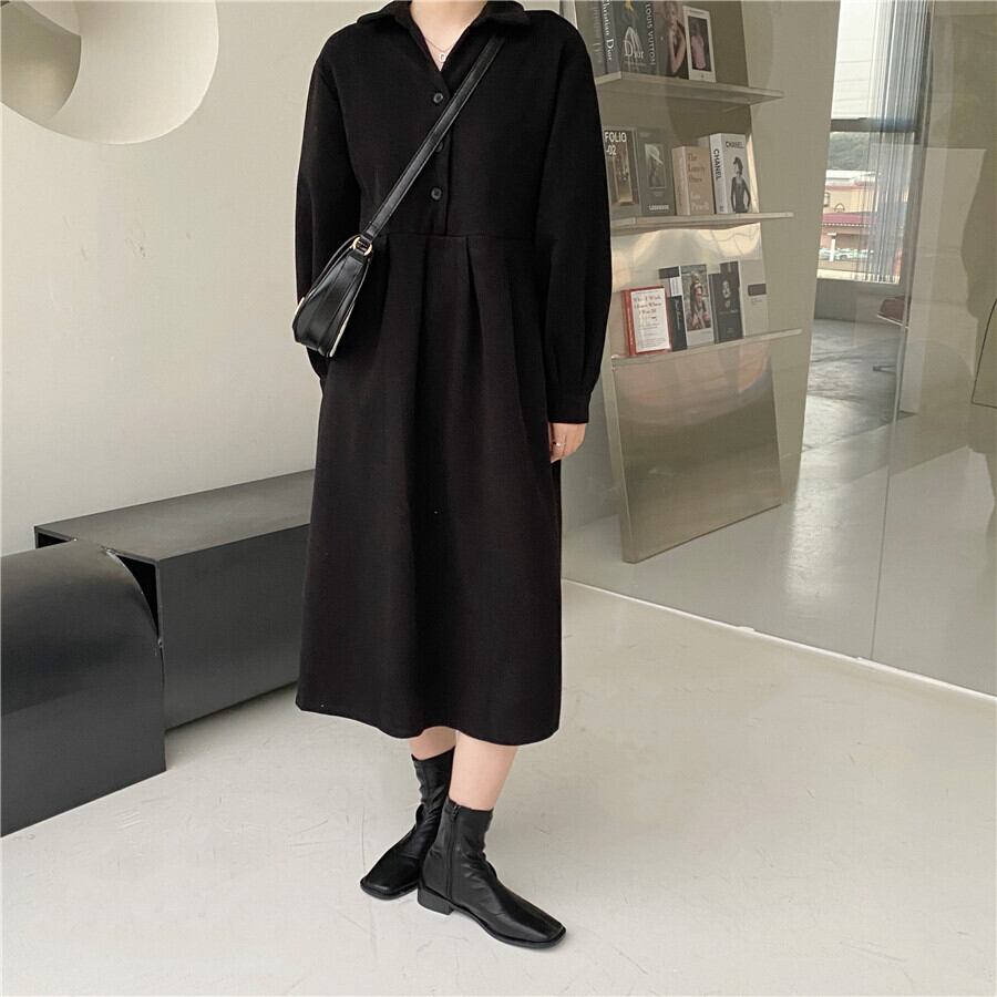 オータムウィンタースタンダードカジュアルロングプリーツスリーブドレス レディース ランタンスリーブ レトロ 秋物 冬物 ステッチ 韓国婦人48030201004