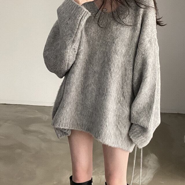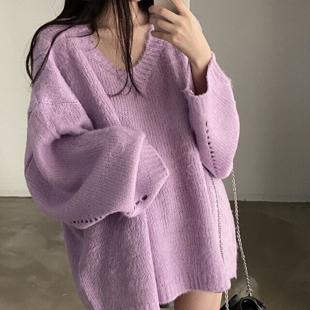 ウィンタースタンダードVネックルーズプルオーバー ニットトップス セーター レディース レトロ 冬物 韓国婦人4879723659