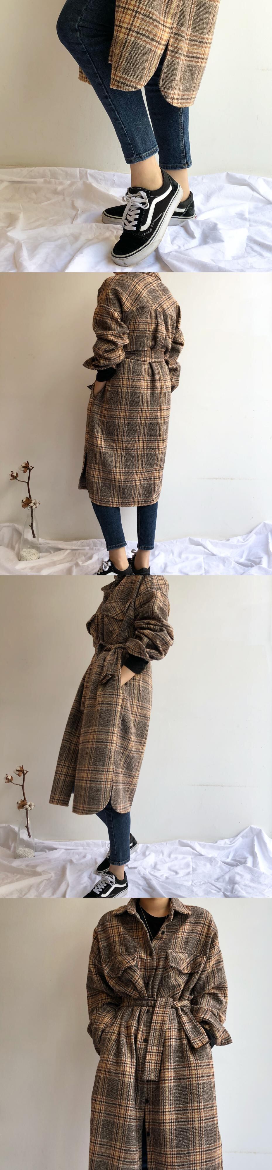 オータムウィンタースタンダードベルト ルーズロング格子柄シャツ ドレス レディース レトロ 秋物 冬物 ハーネス 韓国婦人88116252900