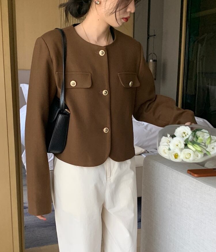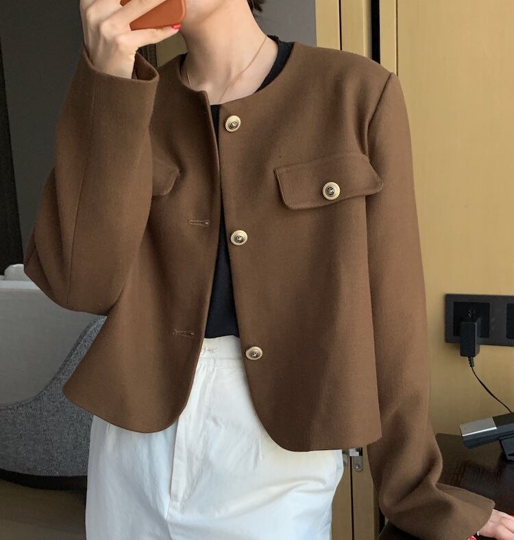 オータムウィンタースタンダードスタイルラウンドネックカジュアルルーズショートジャケット レディース ロング レトロ 秋物 冬物 Oネック 韓国婦人2886055214