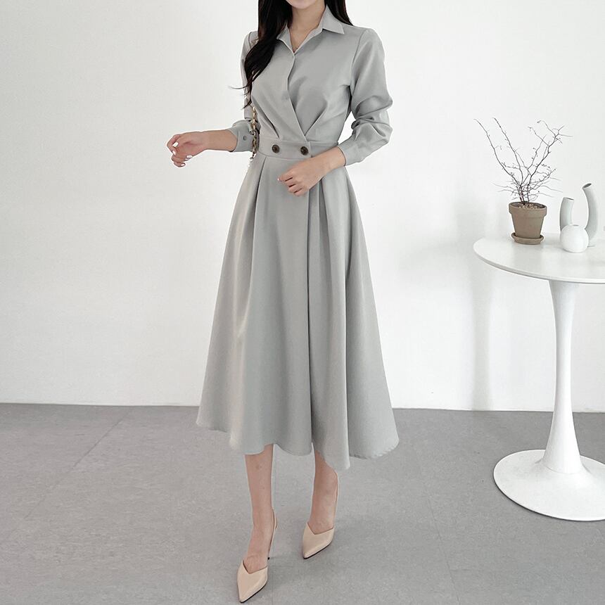 オータムウィンタースタイルウェストシャツ ドレス レディース ロング 秋物 冬物 韓国婦人61168489326