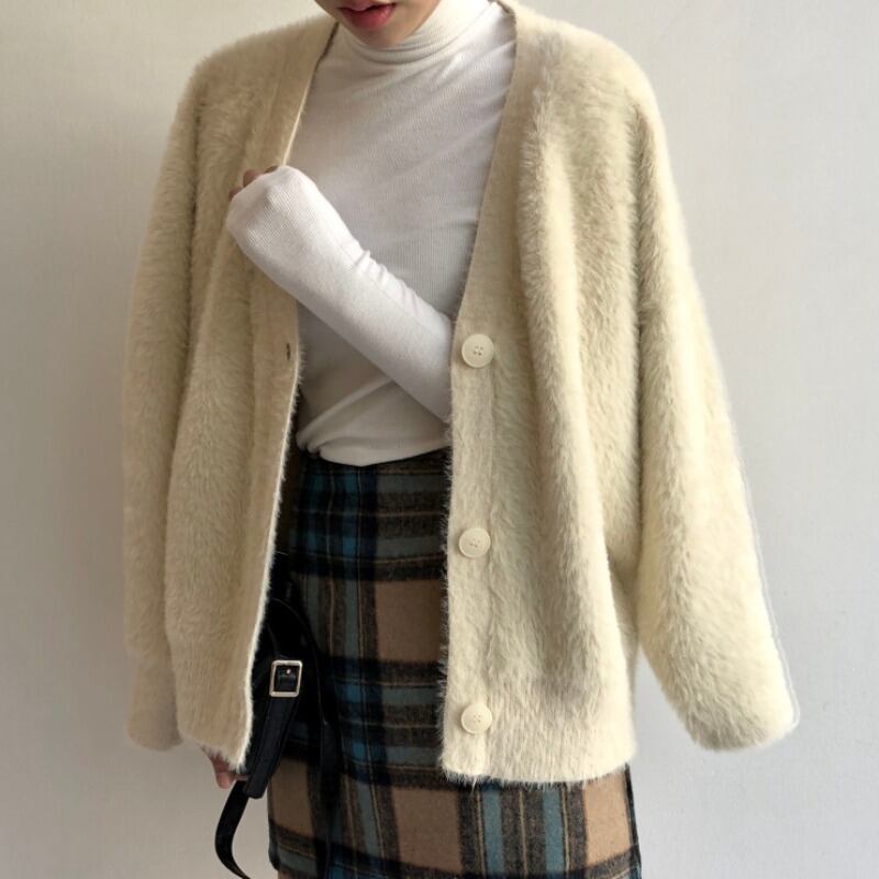 オータムウィンタールーズスタイルVネックセーター カーディガンジャケット レディース ロング 秋物 冬物 韓国婦人5463638714