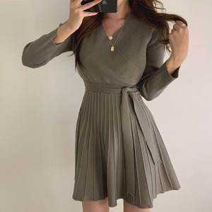 オータムウィンターVネックニットセーター ドレス 秋物 冬物 韓国婦人92472582330