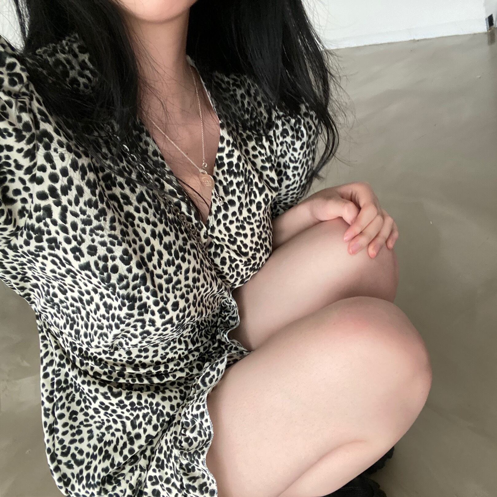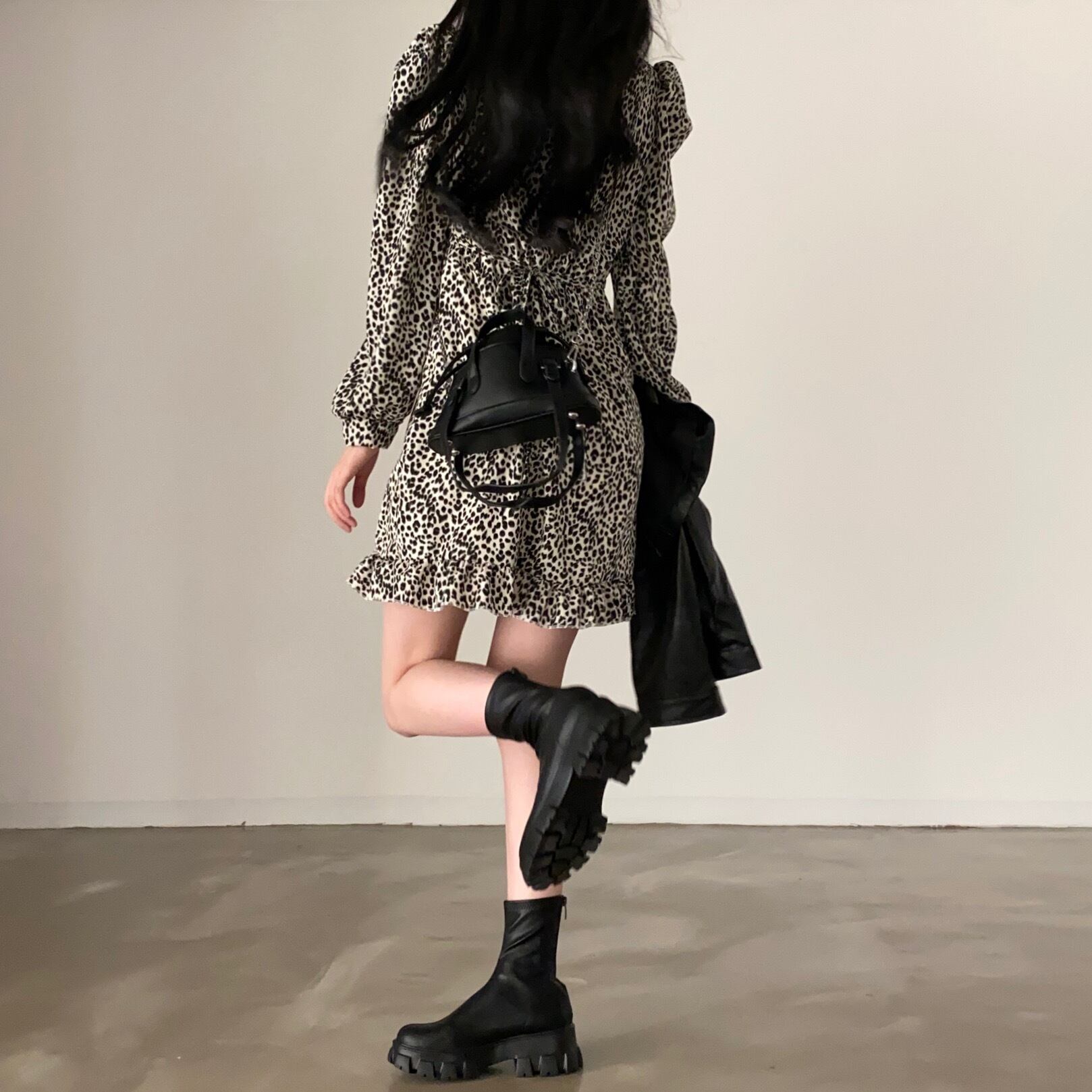オータムウィンタースタンダードVネックレオパードプリント柄ドレス カジュアルショートレザージャケット レトロ 秋物 冬物 韓国婦人69790418343