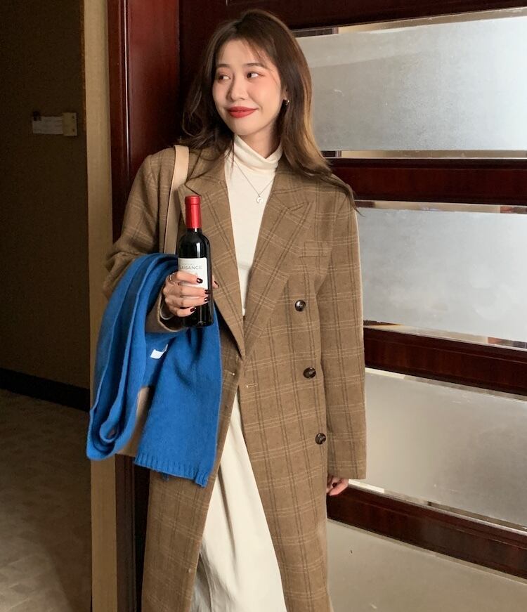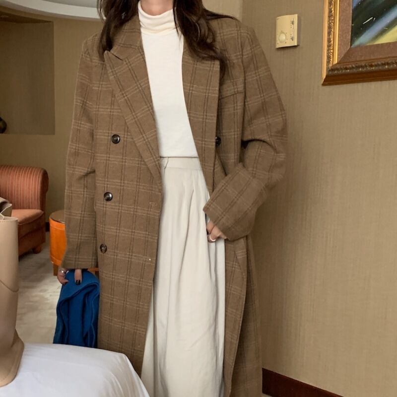 オータムウィンタースタンダードスタイルダブルブレストロングジャケット レディース レトロ 秋物 冬物 韓国婦人53554410006