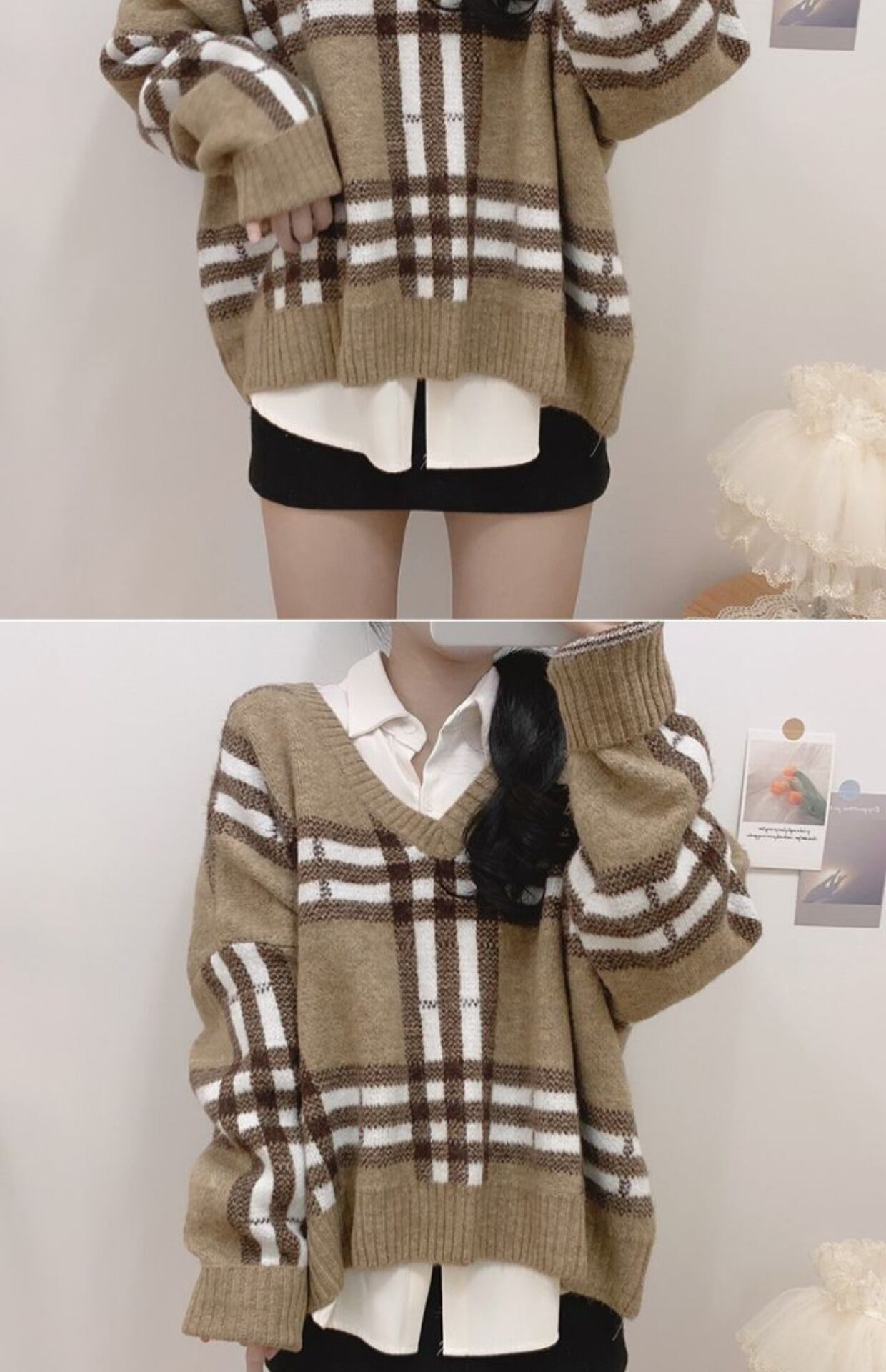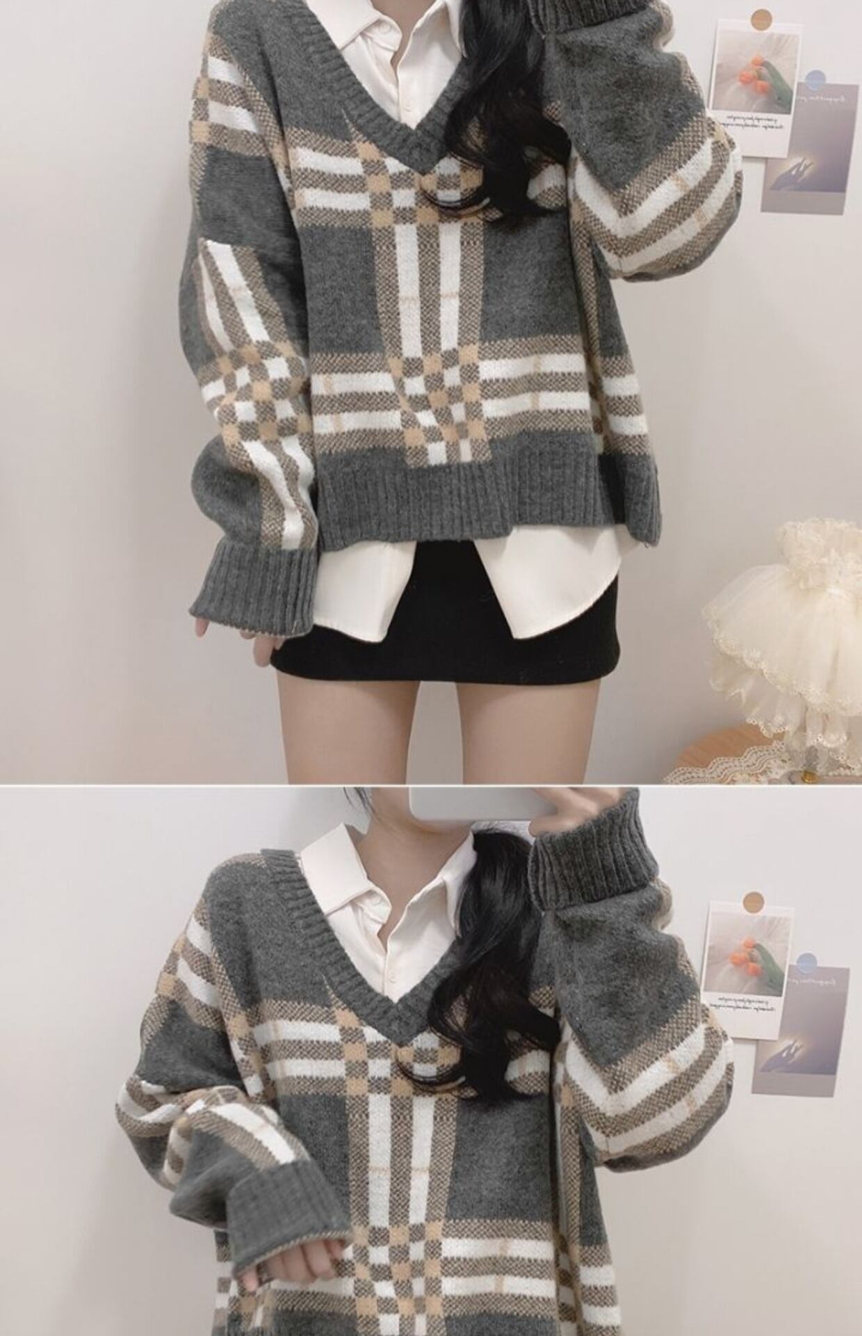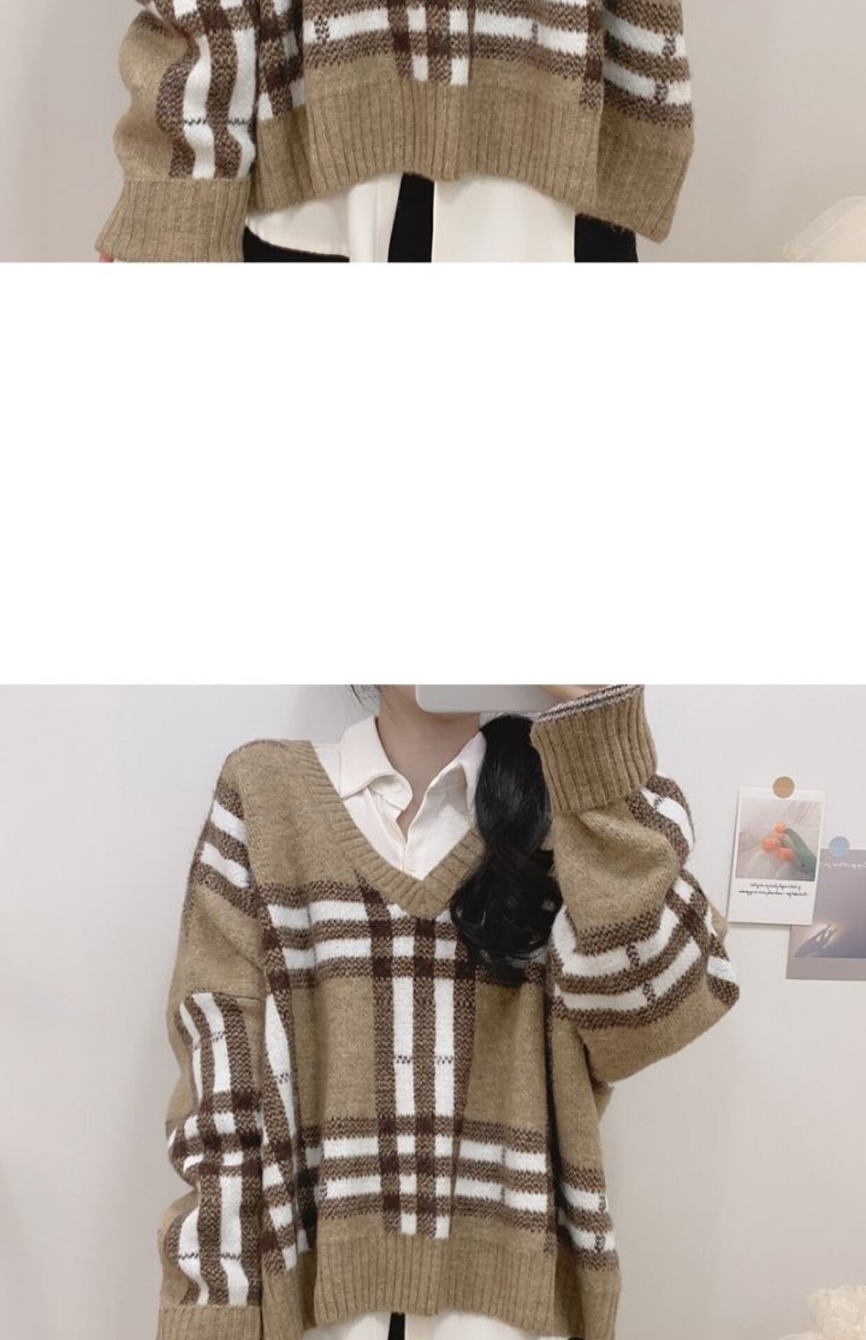 オータムウィンタースタンダードスタイルVネックカジュアルルーズニットセーター レディース レトロ 秋物 冬物 韓国婦人99492860652
