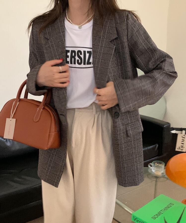 オータムウィンタースタンダードカジュアルルーズ格子柄ジャケット レディース レトロ ストリート 秋物 冬物 韓国婦人39823743365