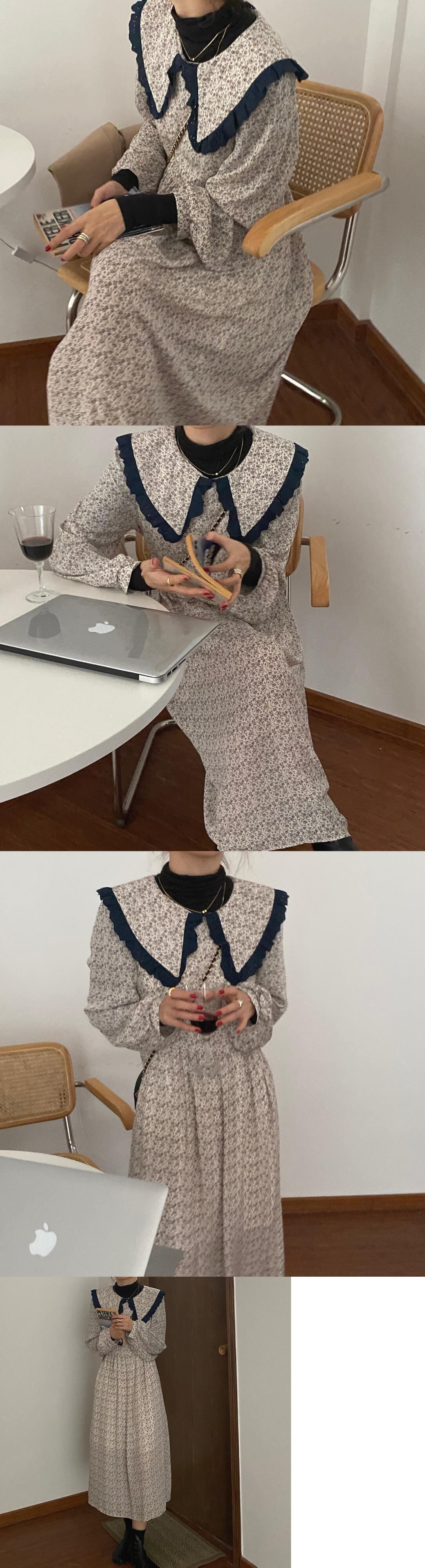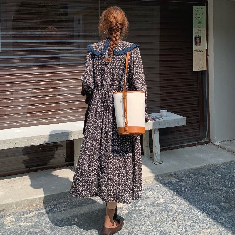 オータムスタンダードカラーウェスト薄手ロングフローラルドレス レディース レトロ 秋物 花柄 韓国婦人20414280566