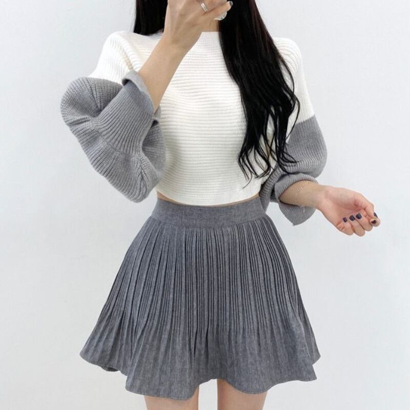 ウィンタースタイルカラープルオーバー スリーブセーター ショートニットトップス ランタンスリーブ 冬物 ステッチ 韓国婦人77937197184