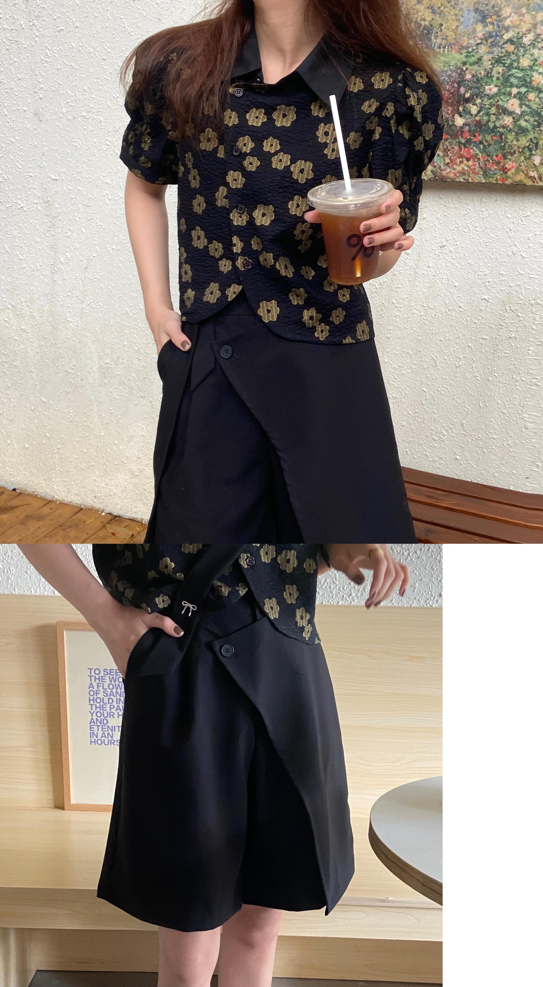 サマースタンダードフローラルシャツ スカート レトロ 夏物 花柄 韓国婦人15350164155