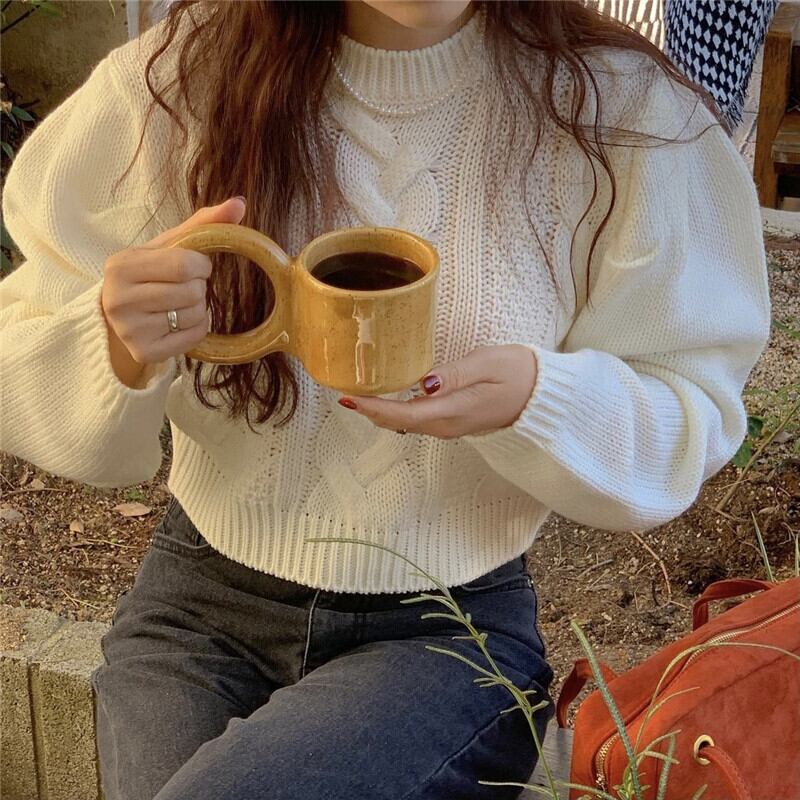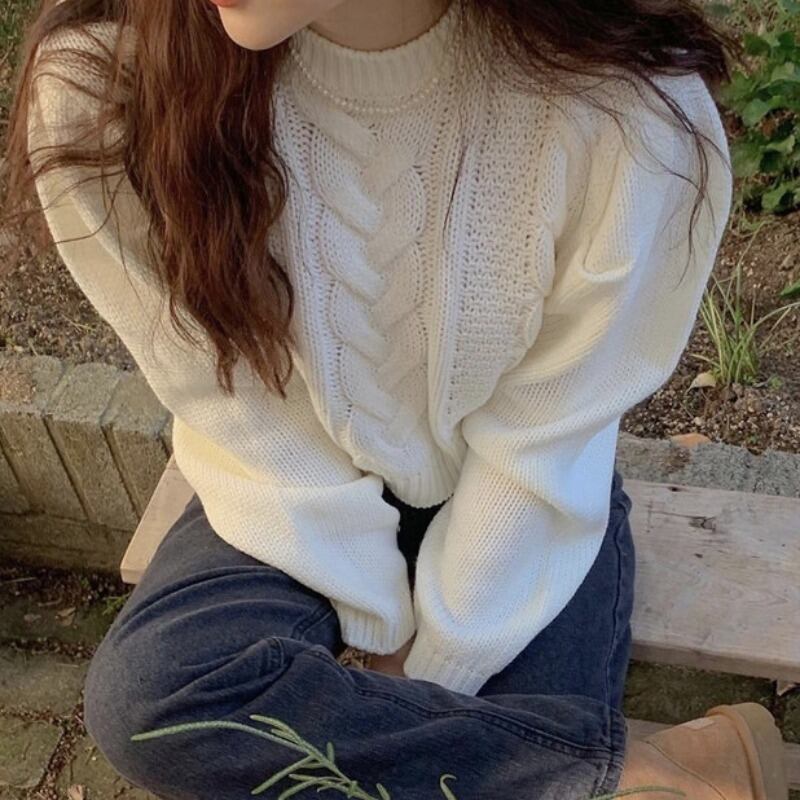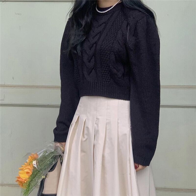 オータムウィンターラウンドネックプルオーバー ルーズスリーブショートセーター ニットトップス レディース 秋物 冬物 Oネック 韓国婦人28286896025