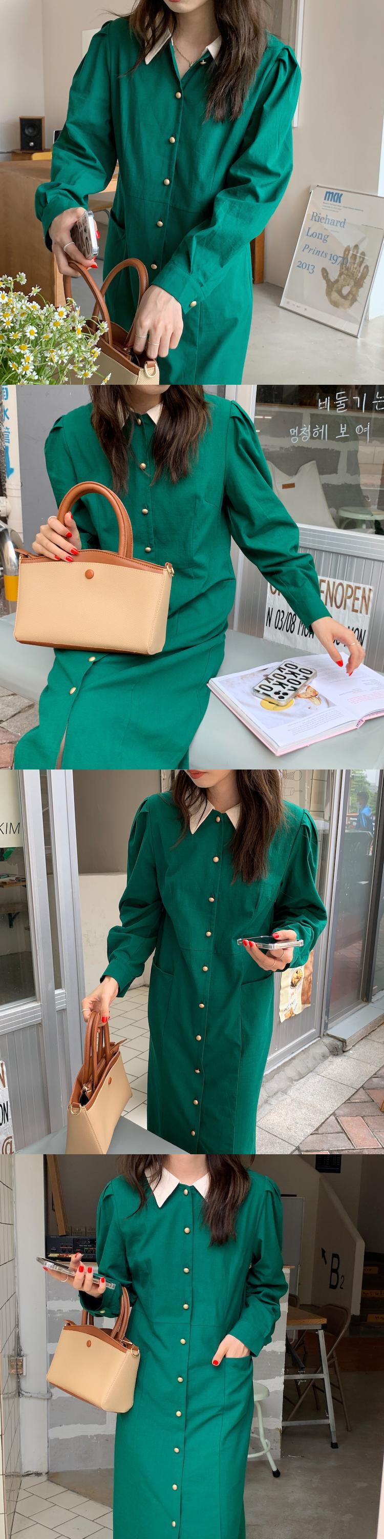スプリングオータムカラーメタルボタンドレス レディース 春物 秋物 韓国婦人39884630640