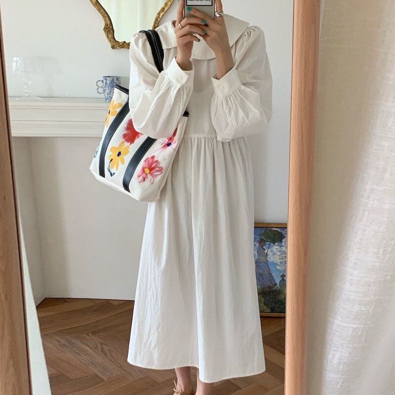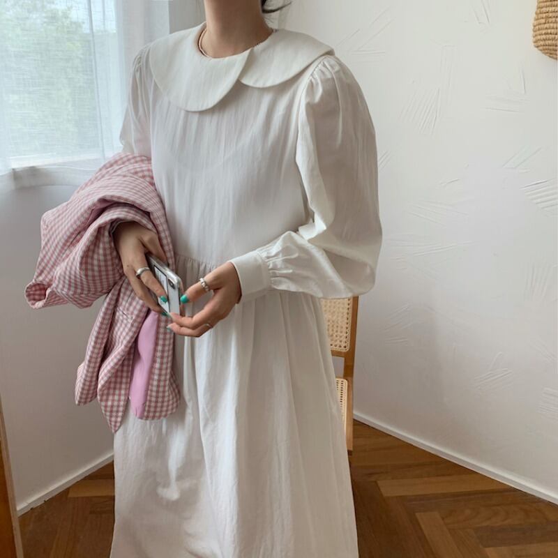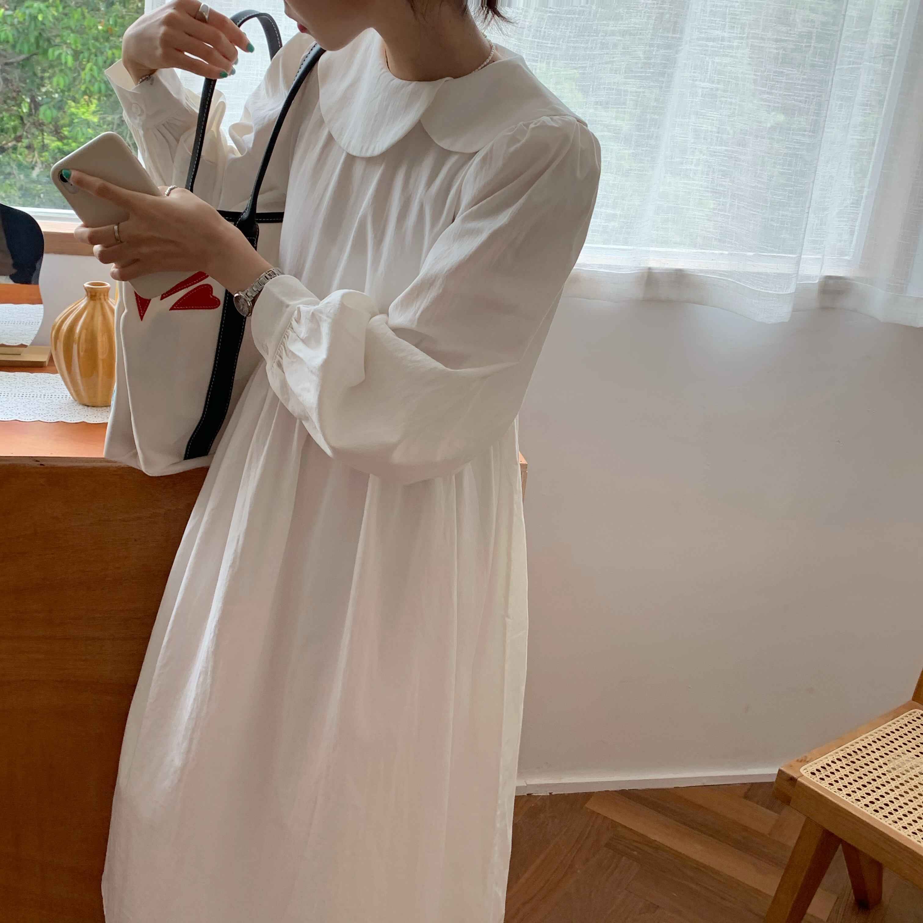 スプリングアシンメトリーラウンドネックソリッド カラースカート ドレス レディース ロング 大人ガーリー スウィート キュート カジュアル 春物 Oネック ソリッドカラー 韓国婦人83667720888
