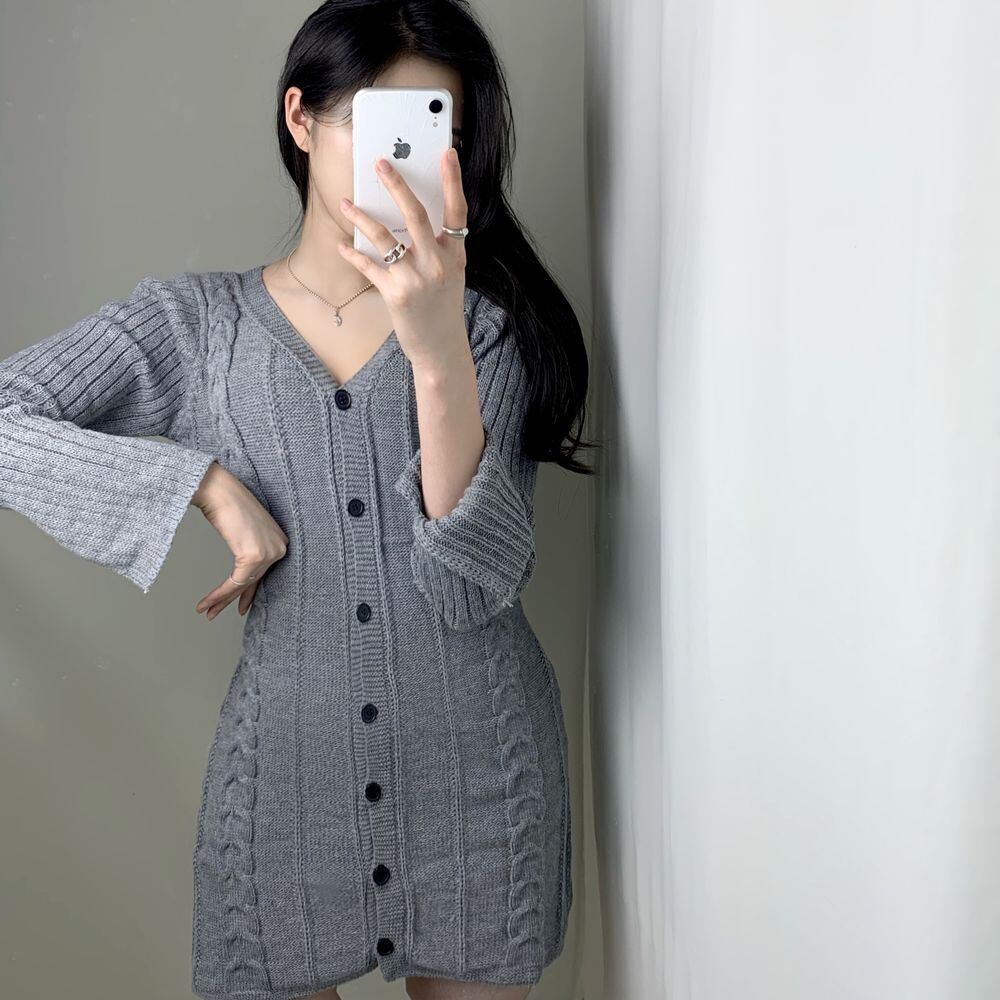 オータムウィンタースタイルVネックニットドレス スカート レディース 秋物 冬物 韓国婦人10452760984