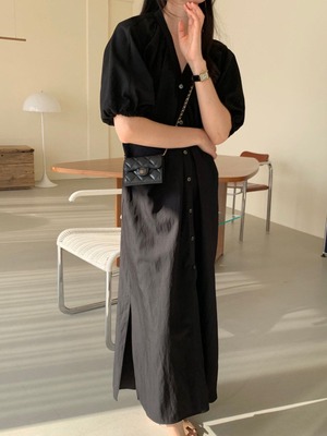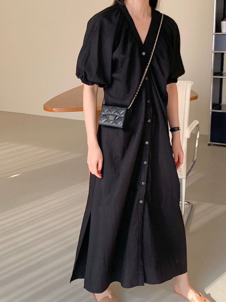 サマースタイルプリーツVネックサイドスリットドレス ロングスカート 夏物 韓国婦人43458255201