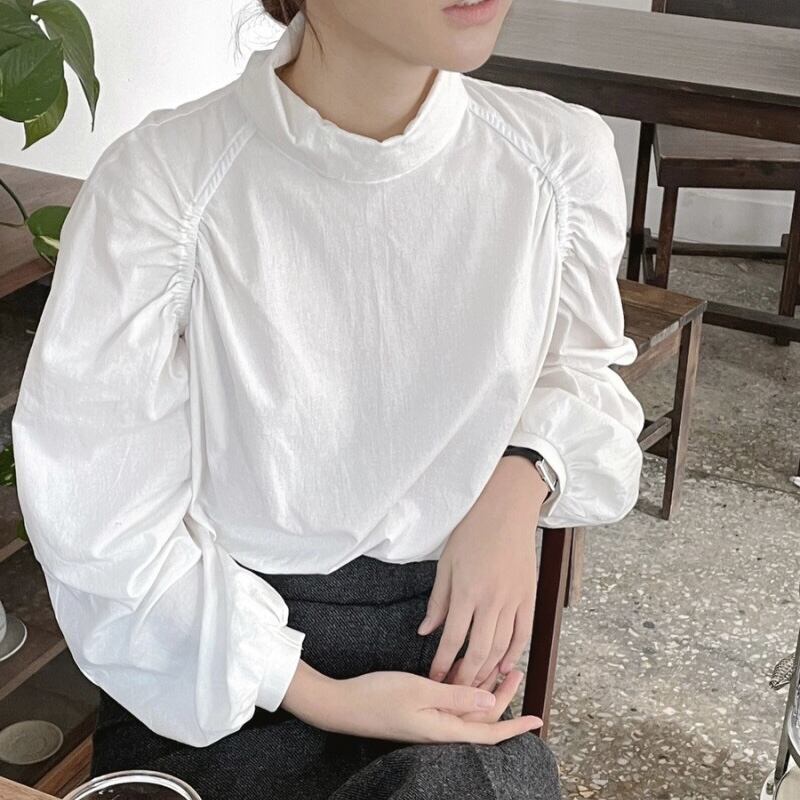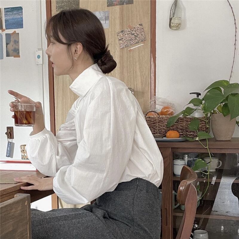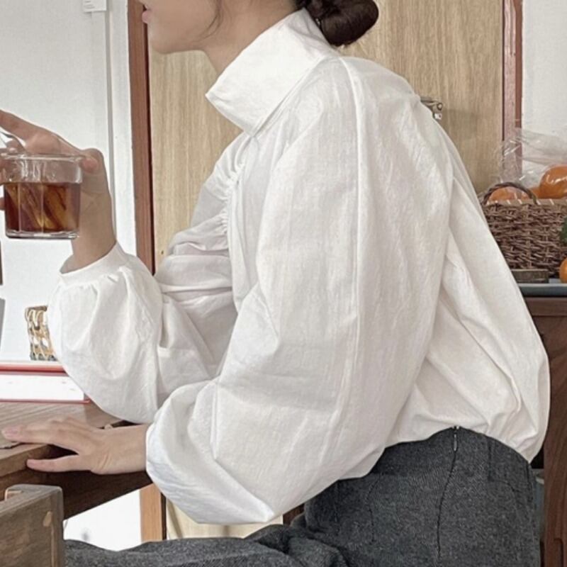 カラースタイルスリーブルーズホワイトシャツ トップス レディース ランタンスリーブ ピュア 韓国婦人87677838756