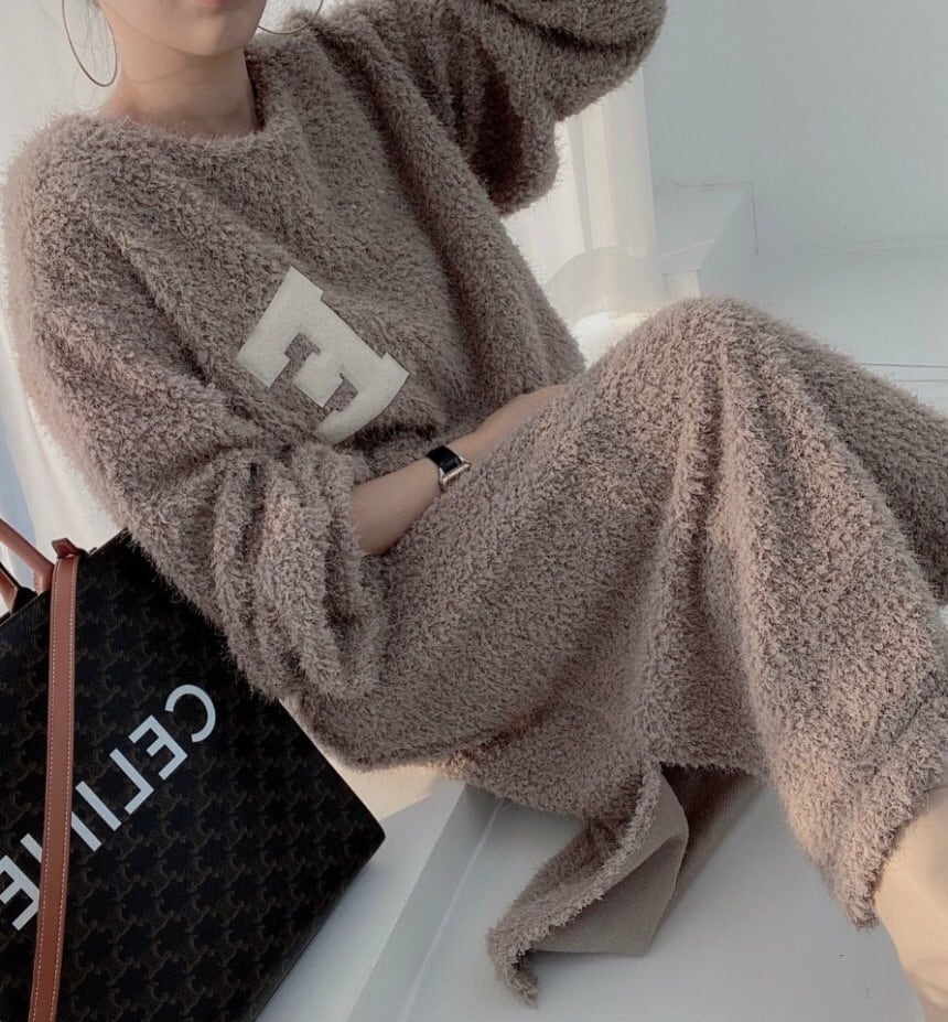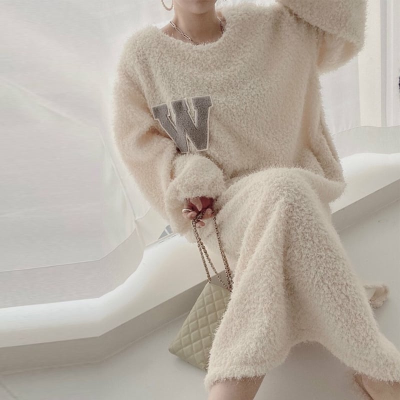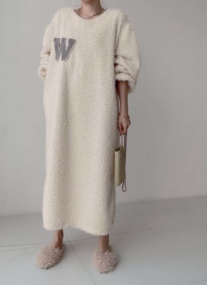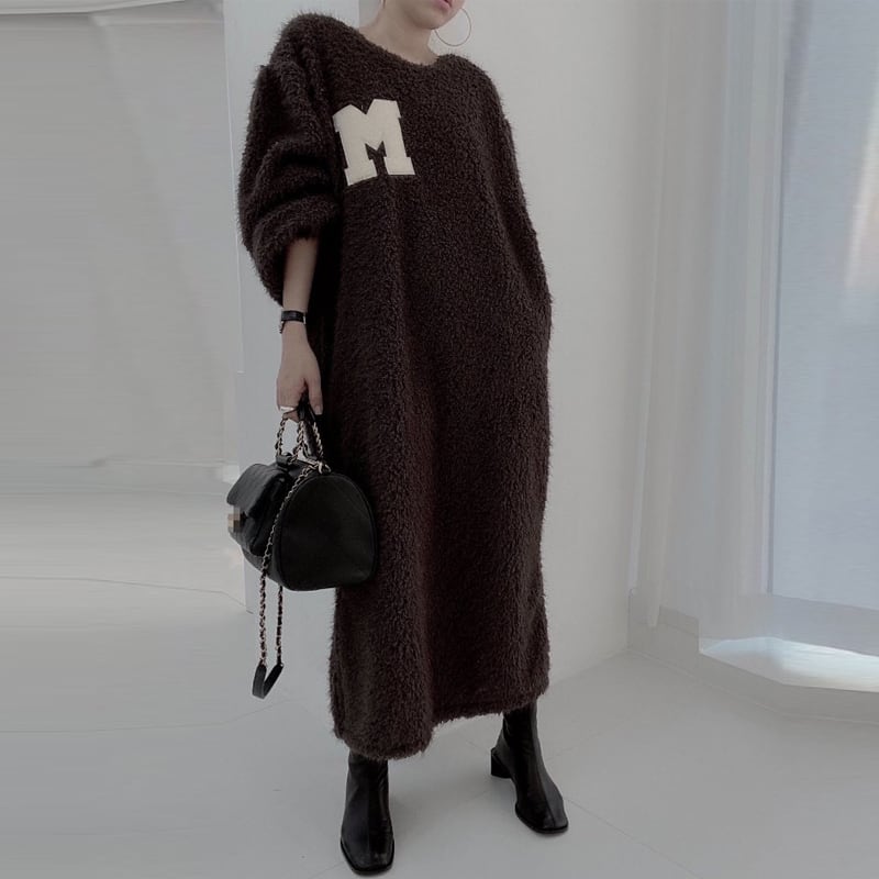 オータムウィンターラウンドネックルーズスリーブセーター ドレス レディース ランタンスリーブ ふわふわ 秋物 冬物 Oネック 韓国婦人65544995808